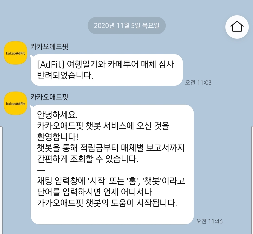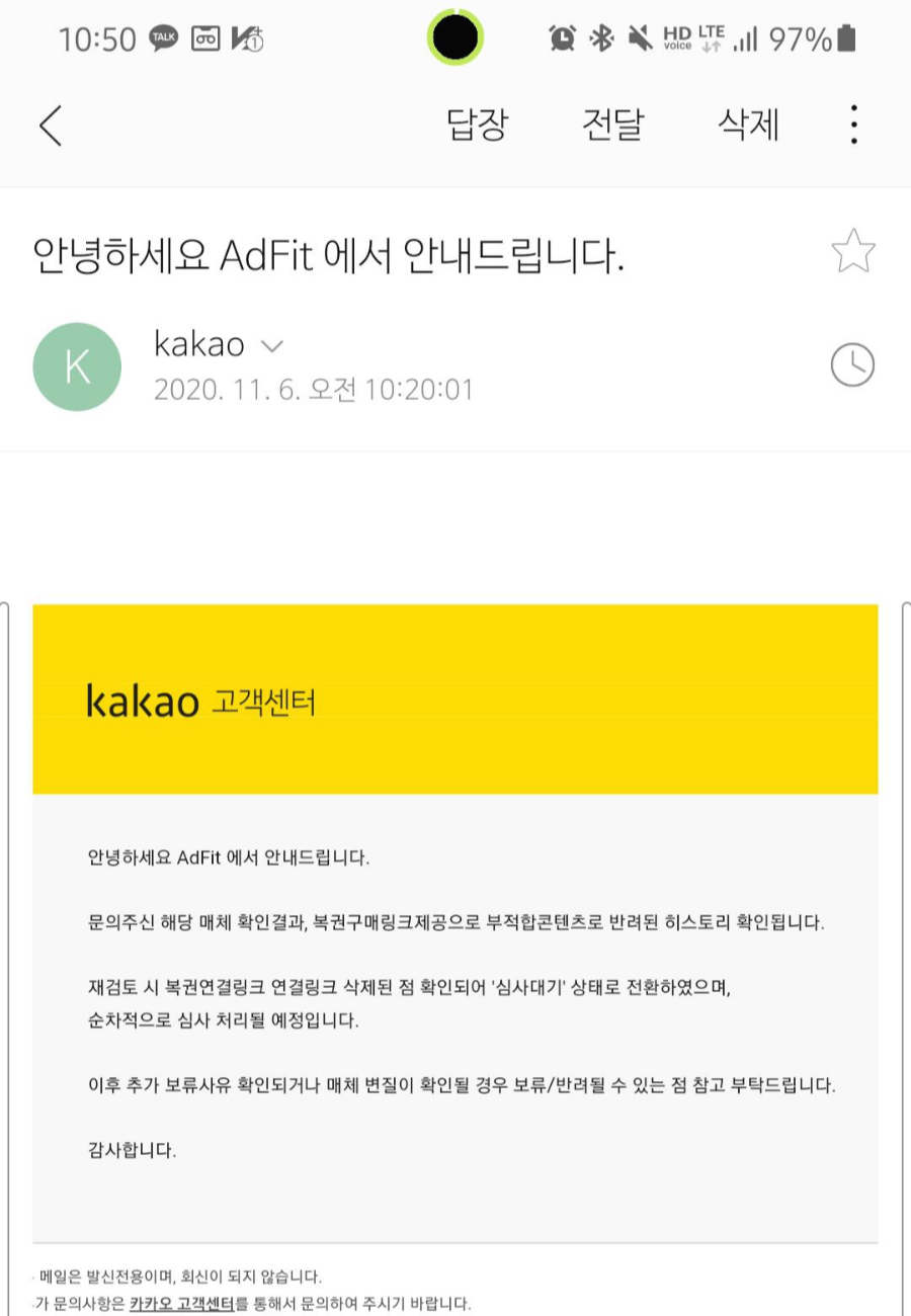 | 정보일기_카카오애드핏 반려 대응후 승인완료 광고게시 시작! (26) | 2020.11.09 |