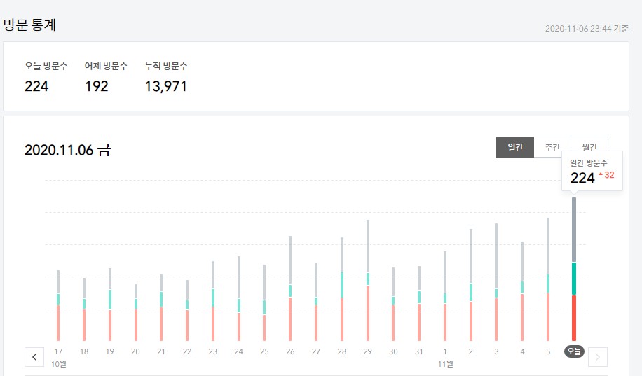 아참, 오늘 처음으로 티스토리 1일 방문자 수가