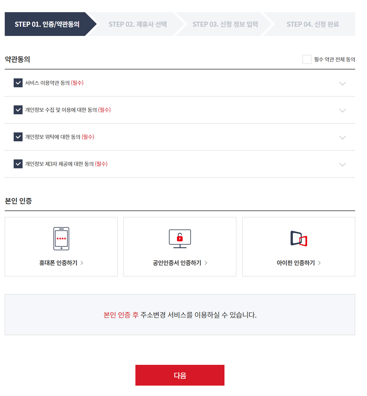 주소를 입력하면, 약관 동의 항목으로 넘어가게 됩니다.