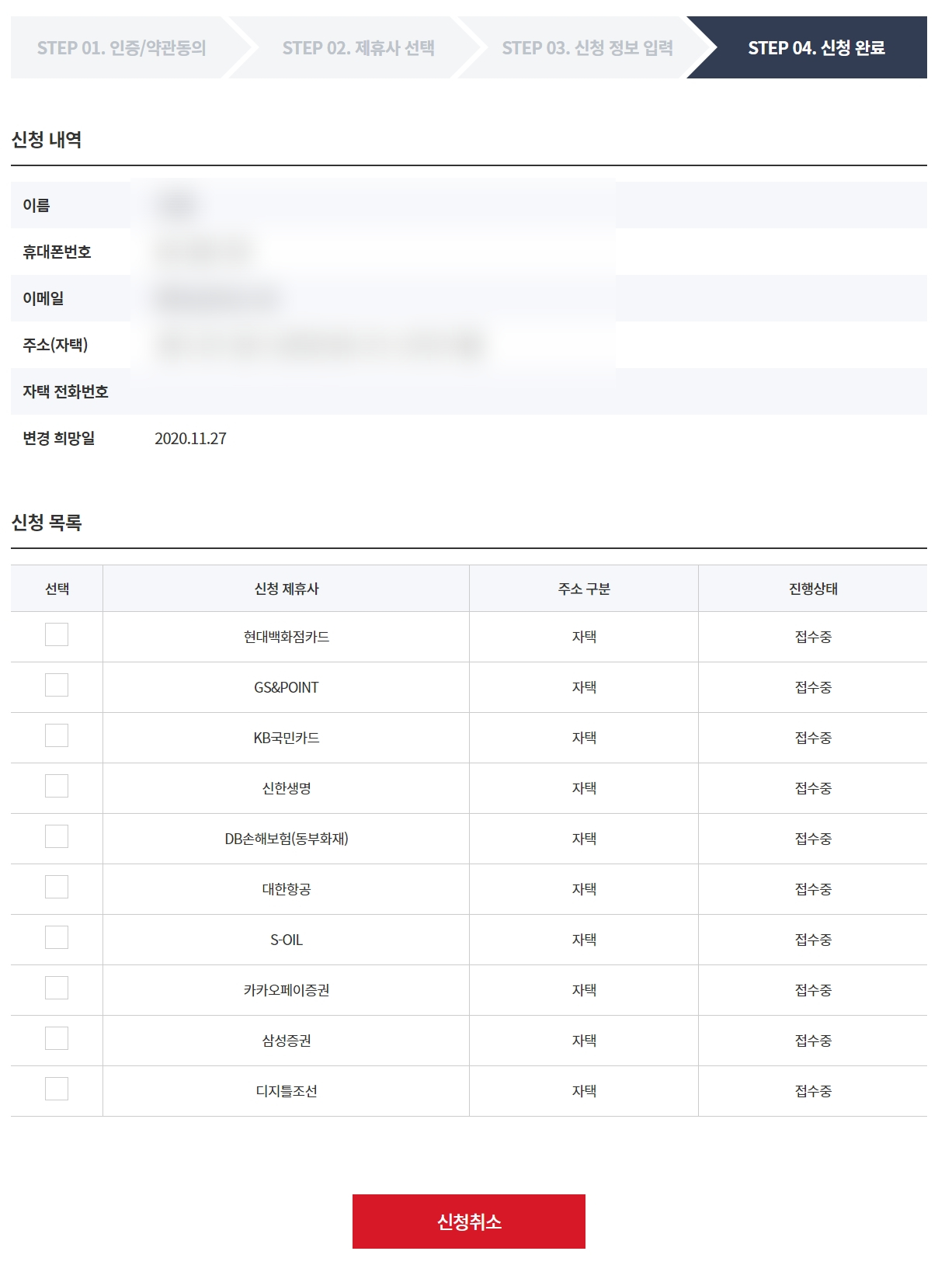 저는 이렇게 위에 나온 업체에 변경 신청을 하였습니다~!