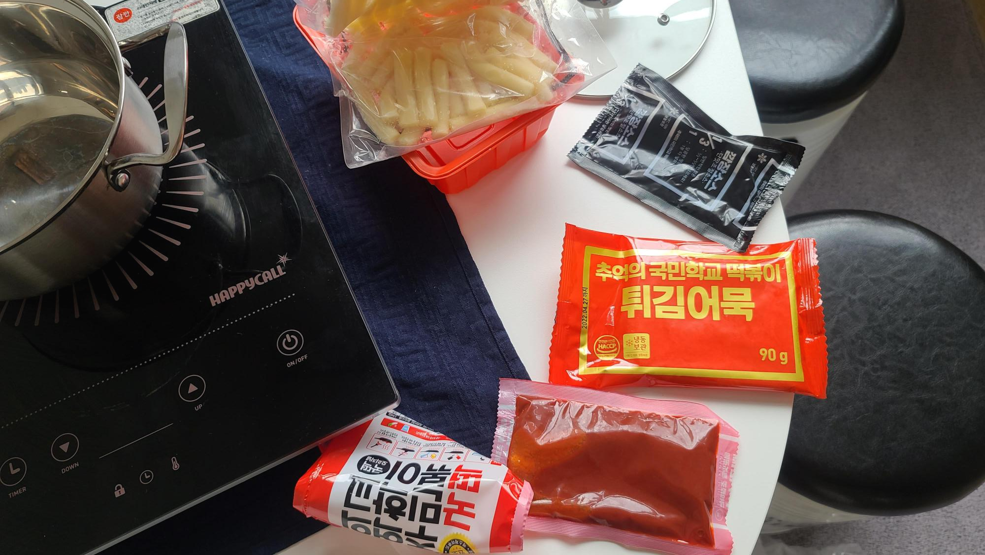 포장을 뜯으면 소스 3개, 떡, 어묵 이렇게 나옵니다.