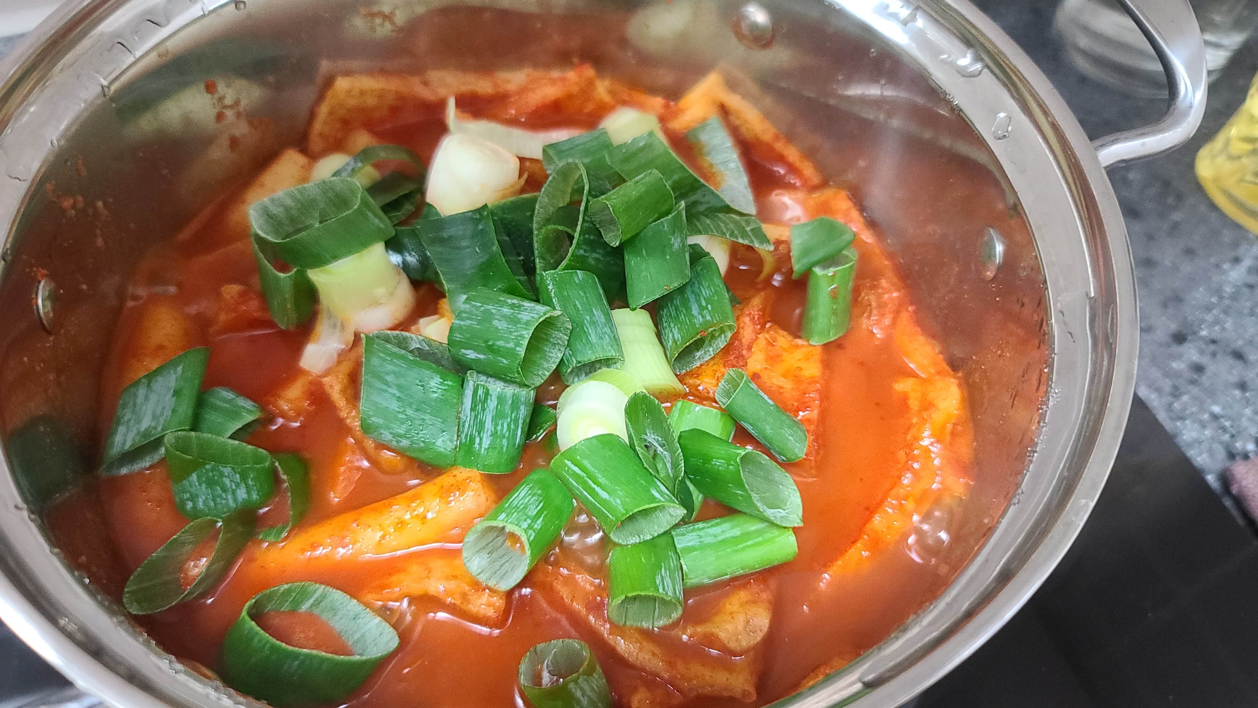 냄비에서 소스와 국물이 끓으면