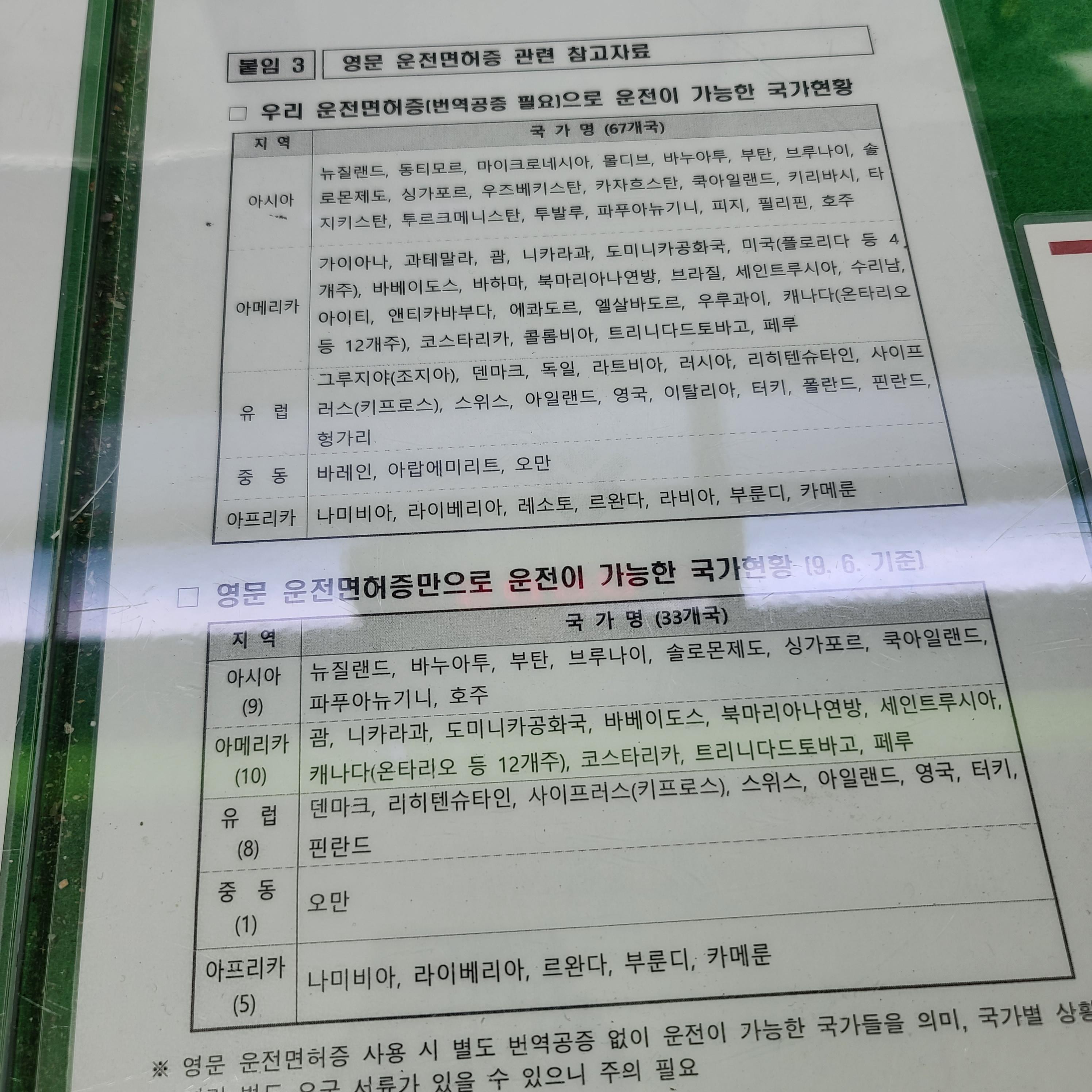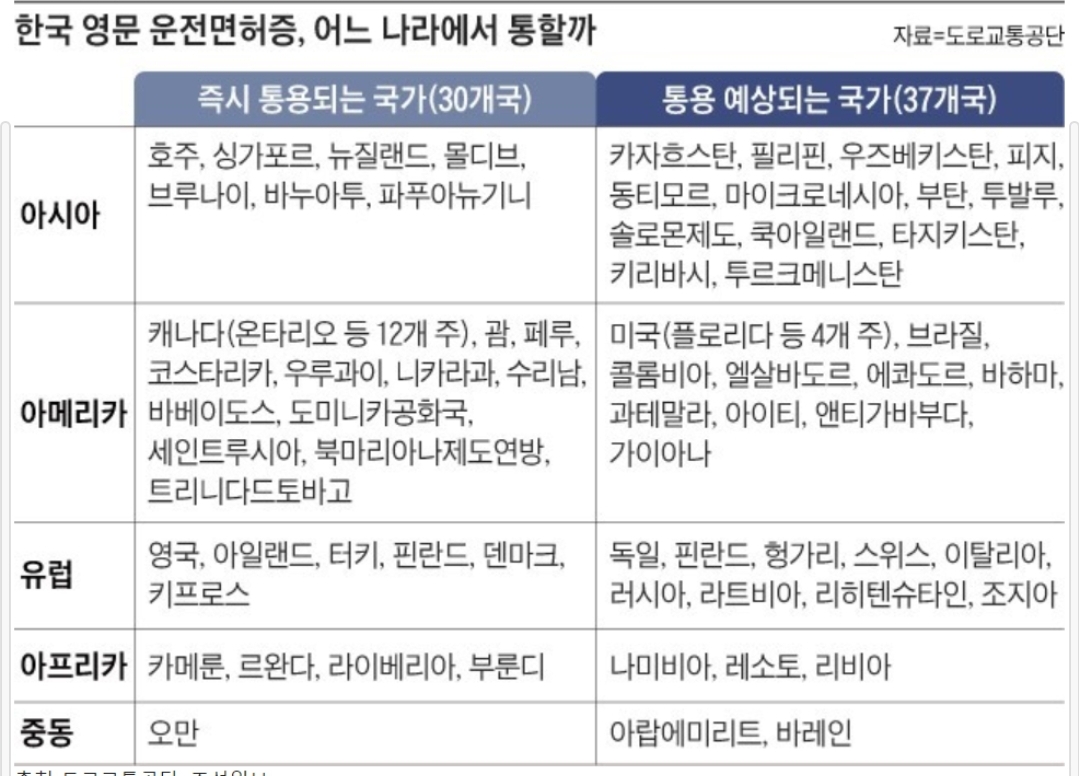 해외겸용운전면허증으로 운전 가능한 국가는