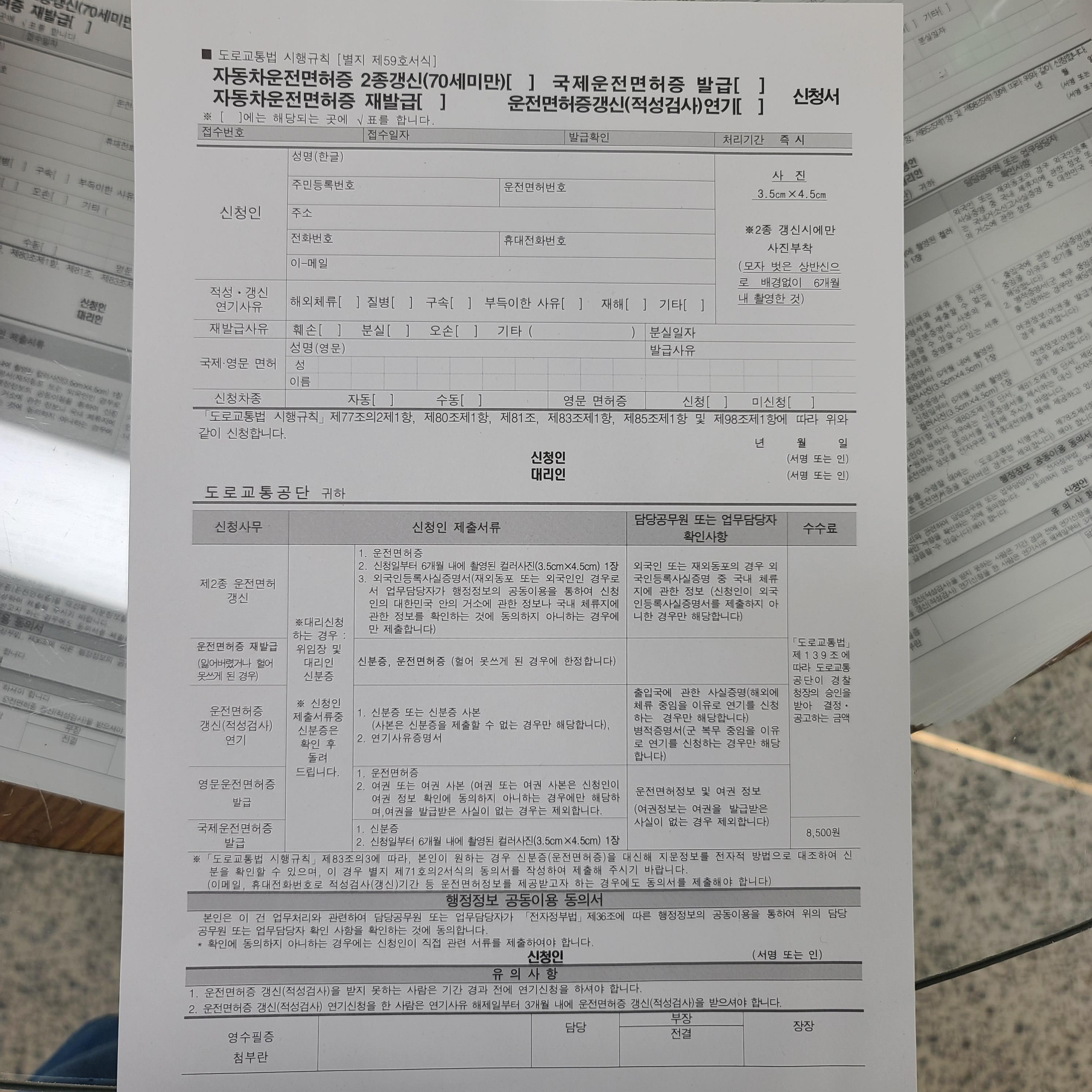만약 면허증 사진을 바꾸시고 싶다면 증명사진도 함께 제출하면 됩니다.