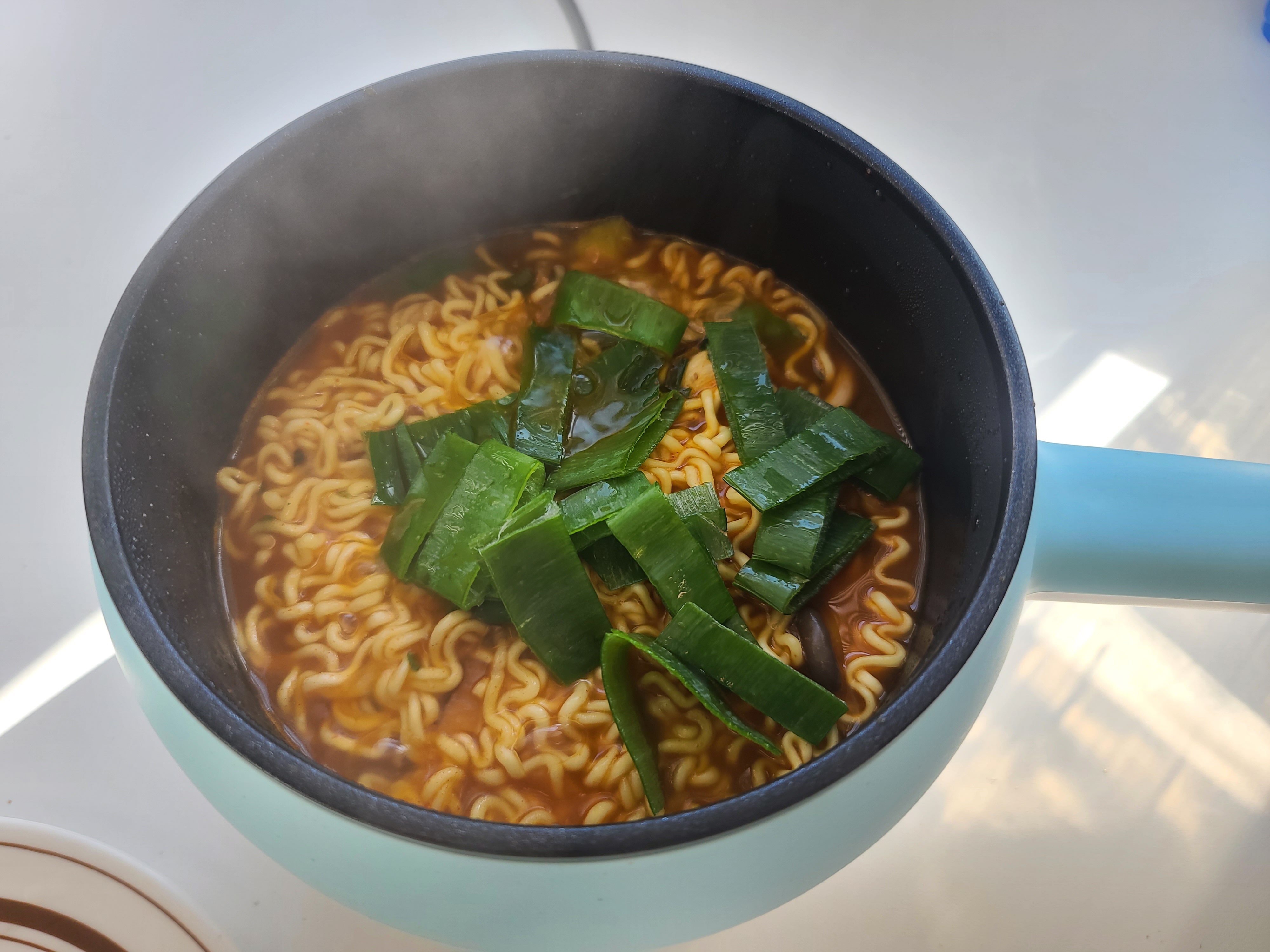 대파를 슝슝 올려주면~! 오늘의 라면은 끝!