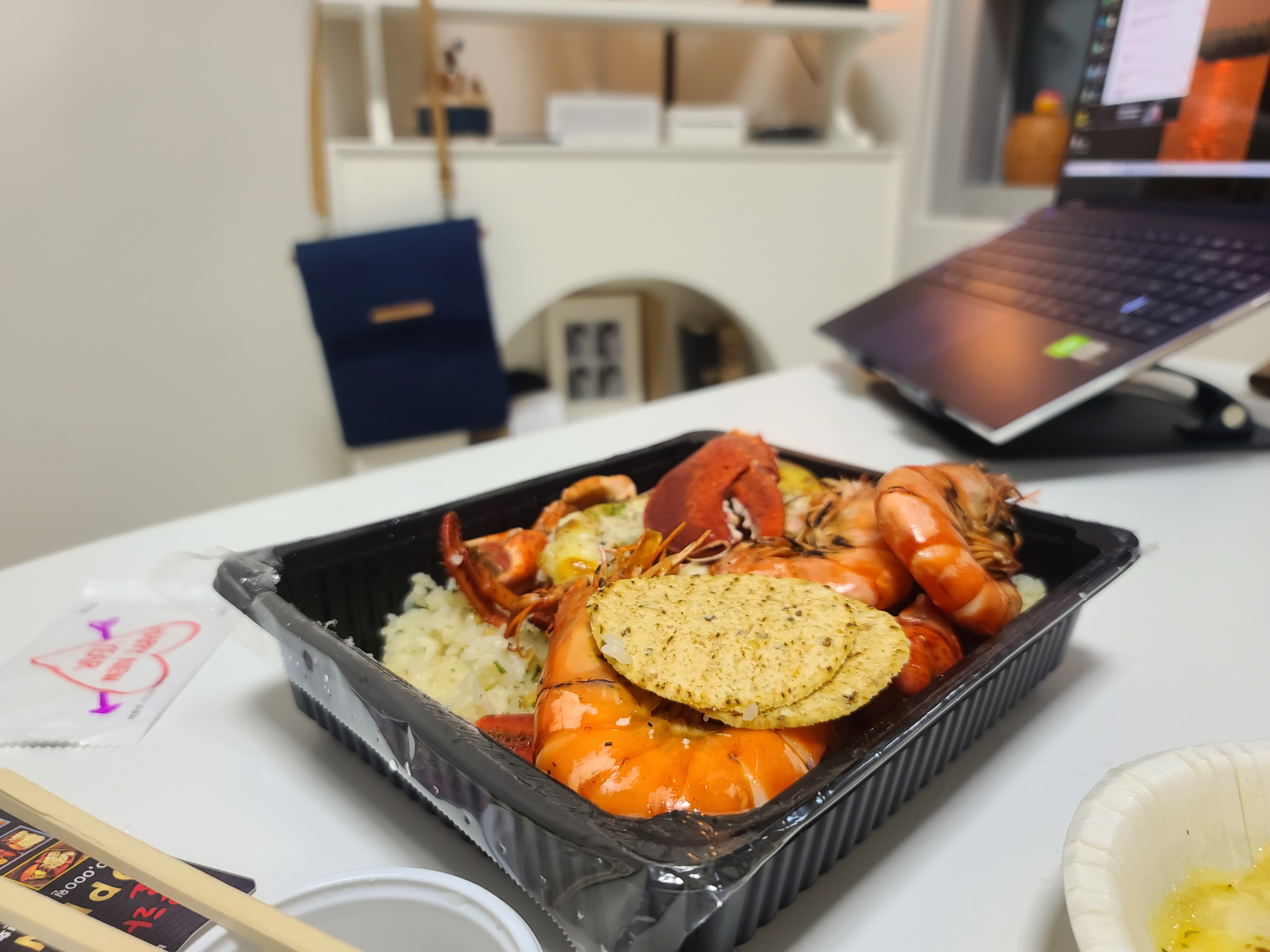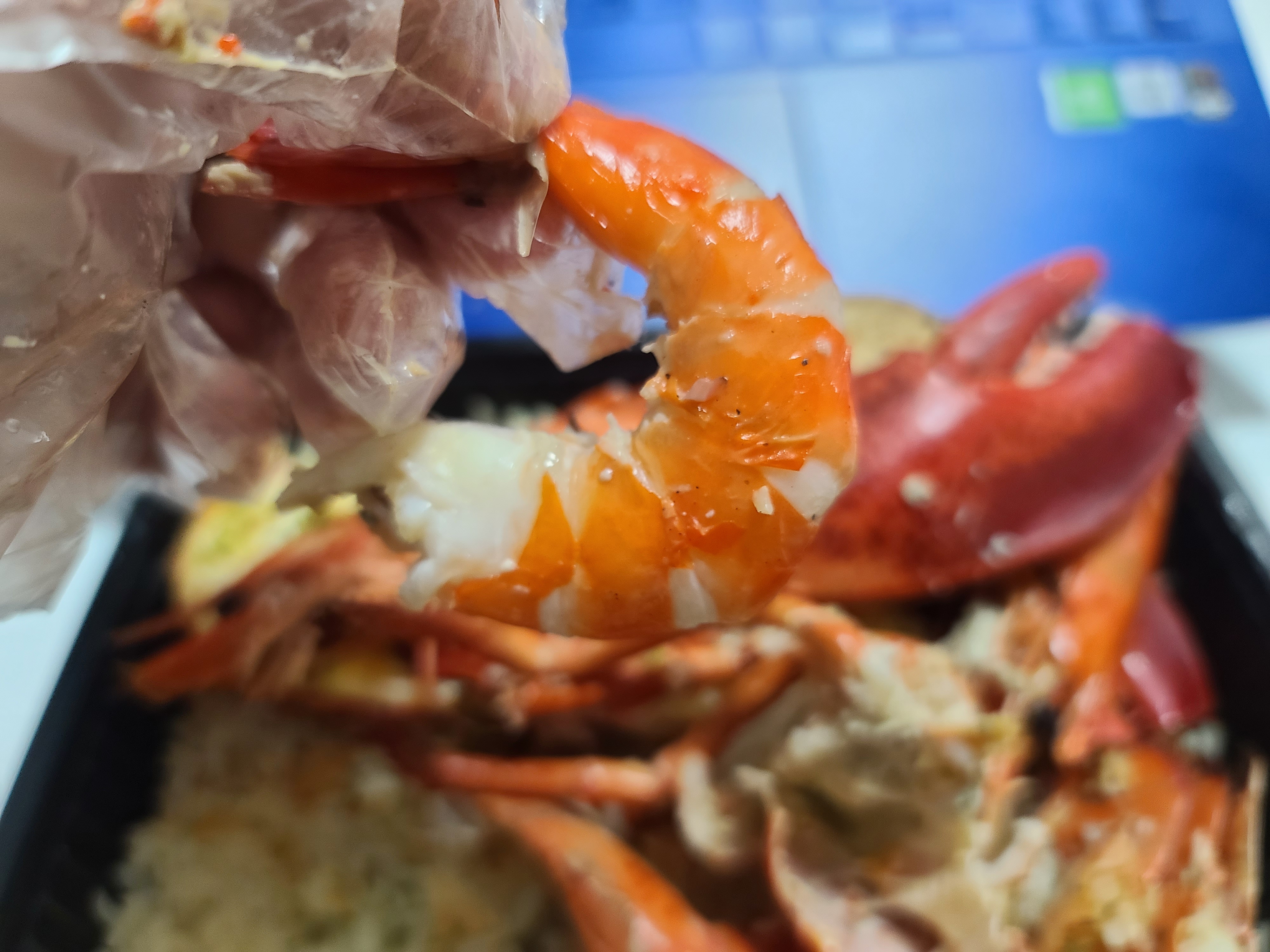 라는 마음에 새우 1개와 랍스터 반쪽 (몸통)을