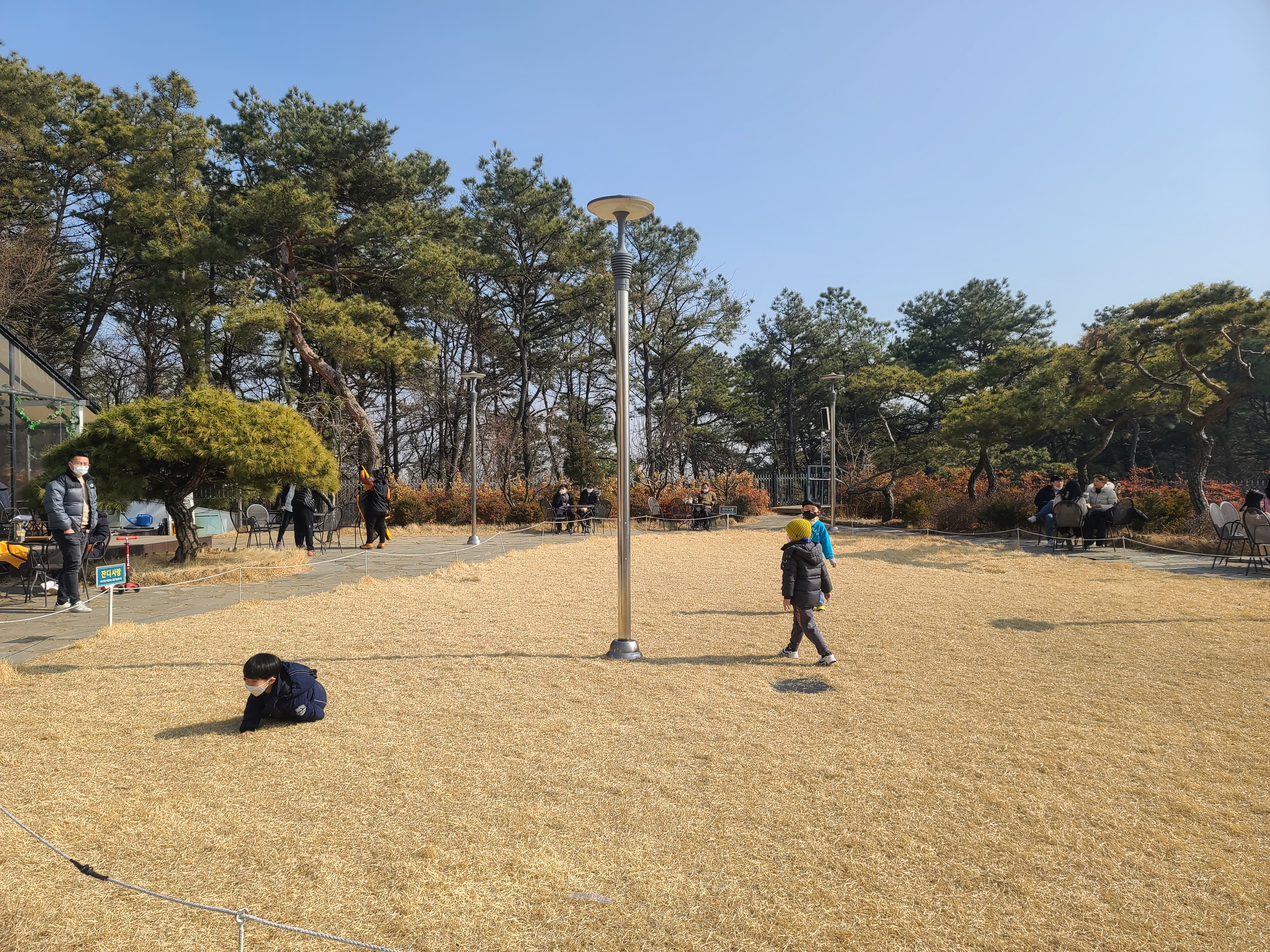 사람들이 많을 때는 저기에도 앉아서 휴식을 취하며,
