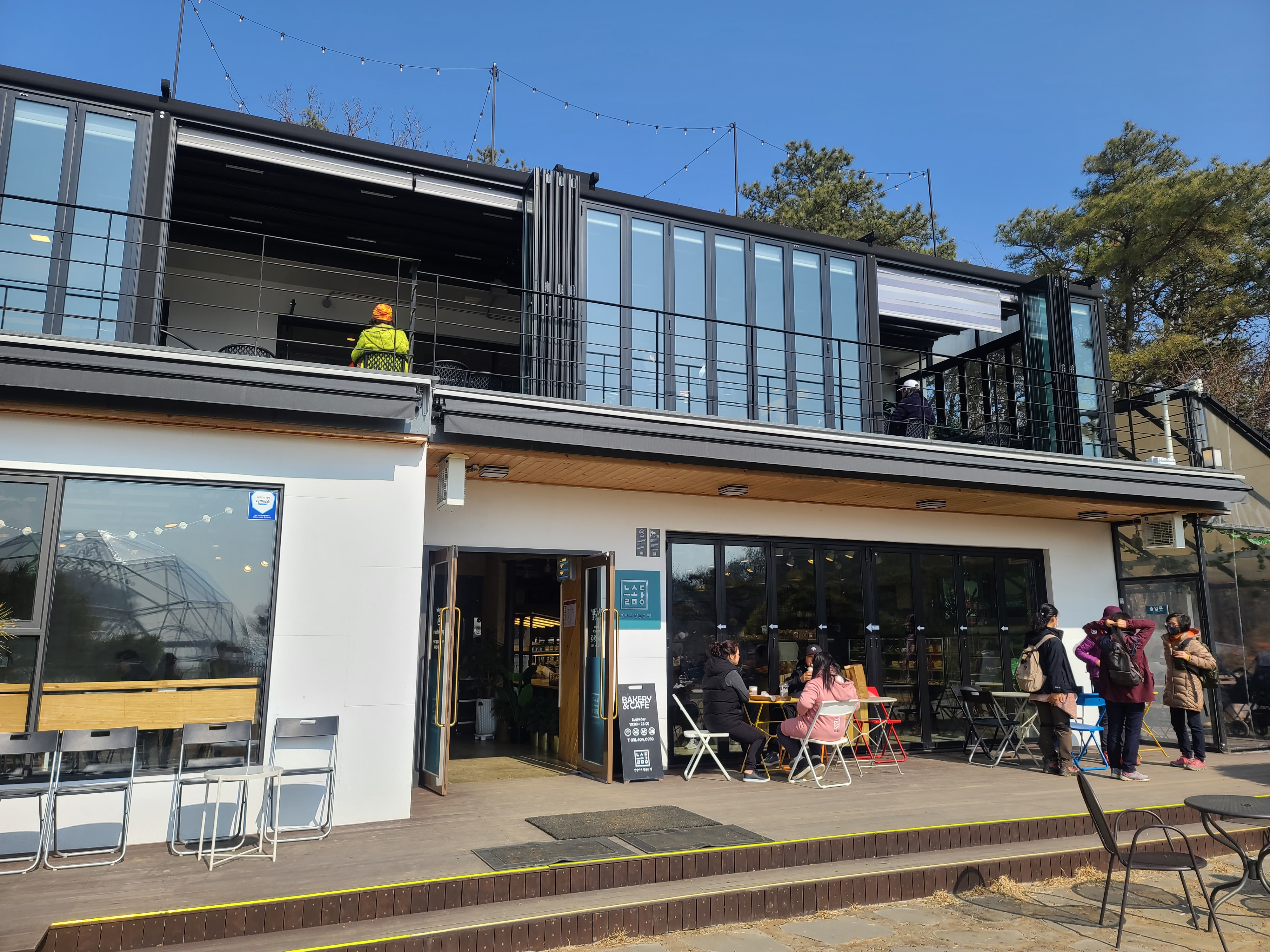 야외 테이블에서 어른들도 햇살 받으며 쉬기 참 좋다.
