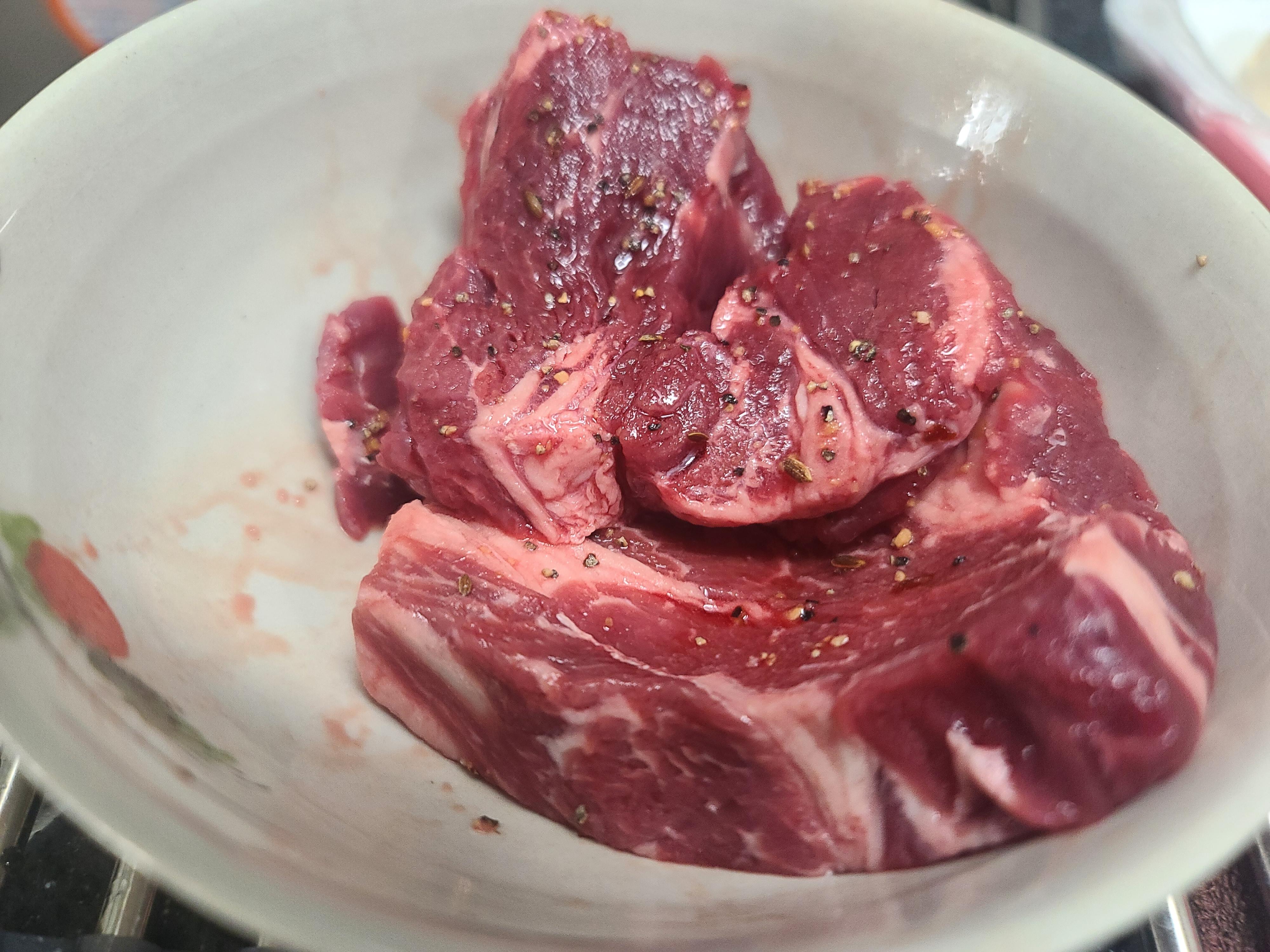 1. 해동된 고기에 핏물을 제거하고~