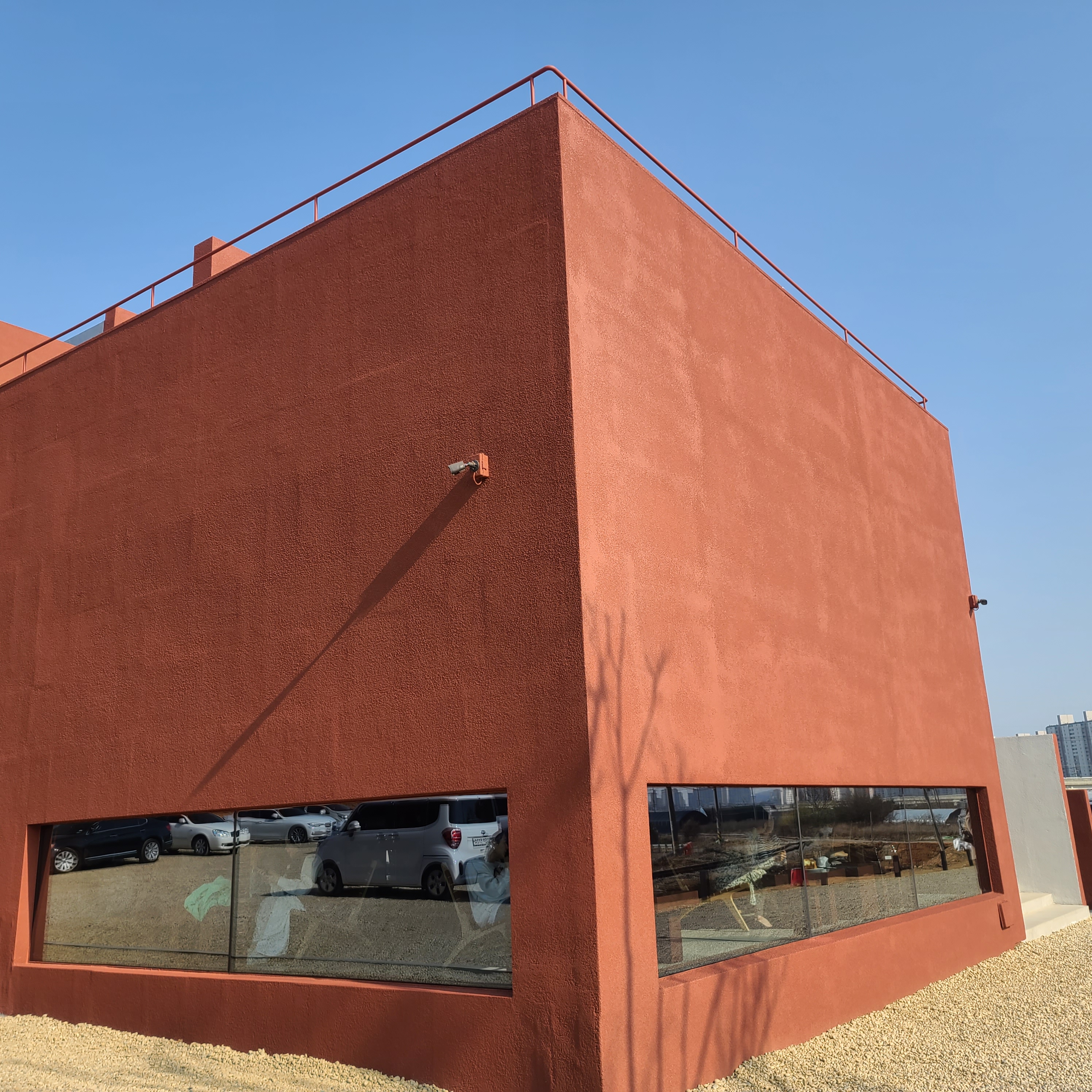 저 멀리 보이는 황토색 건물이