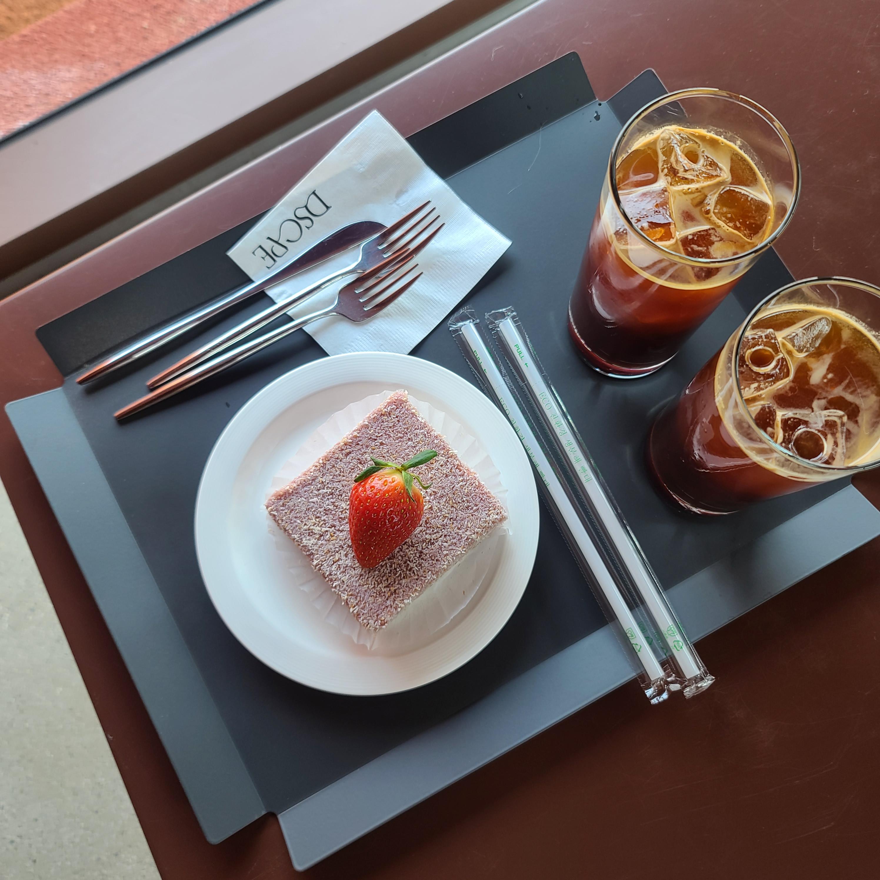 주문한 커피와 디저트가 나왔어요~!