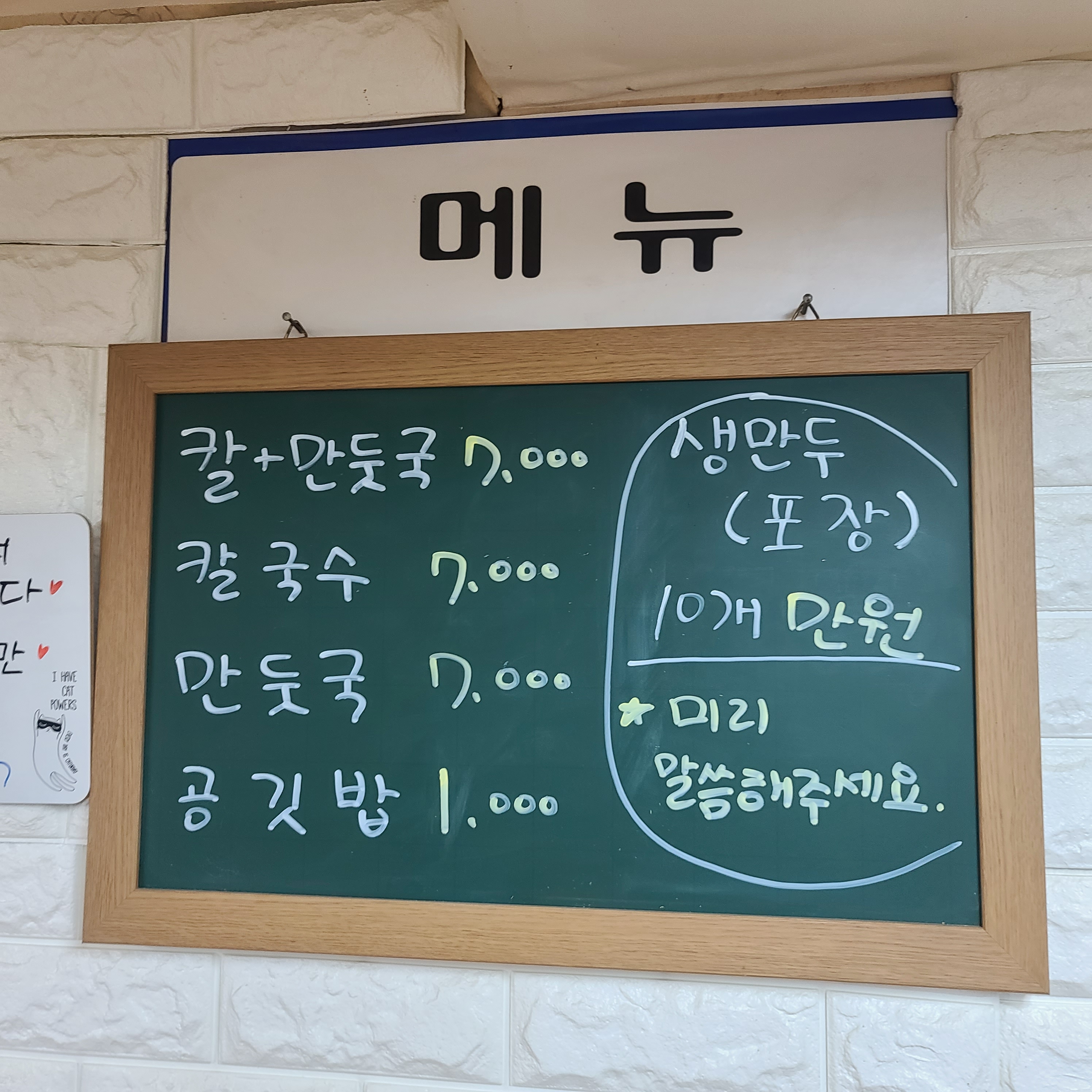 우린 칼 만둣국 2개 주문!
