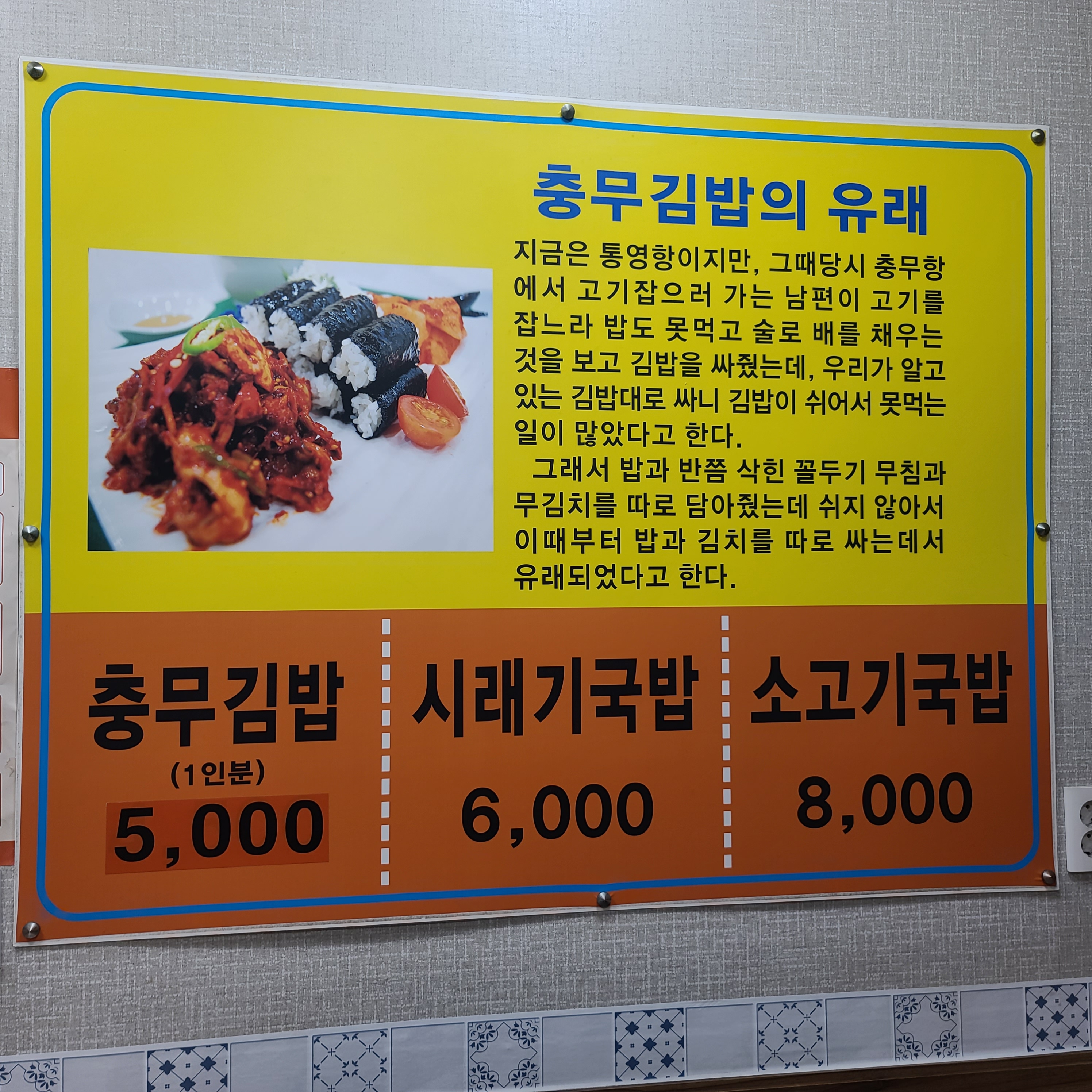 충무김밥의 유래도 적혀있었다.