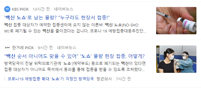 코로나 백신 노쇼~! 의 경우