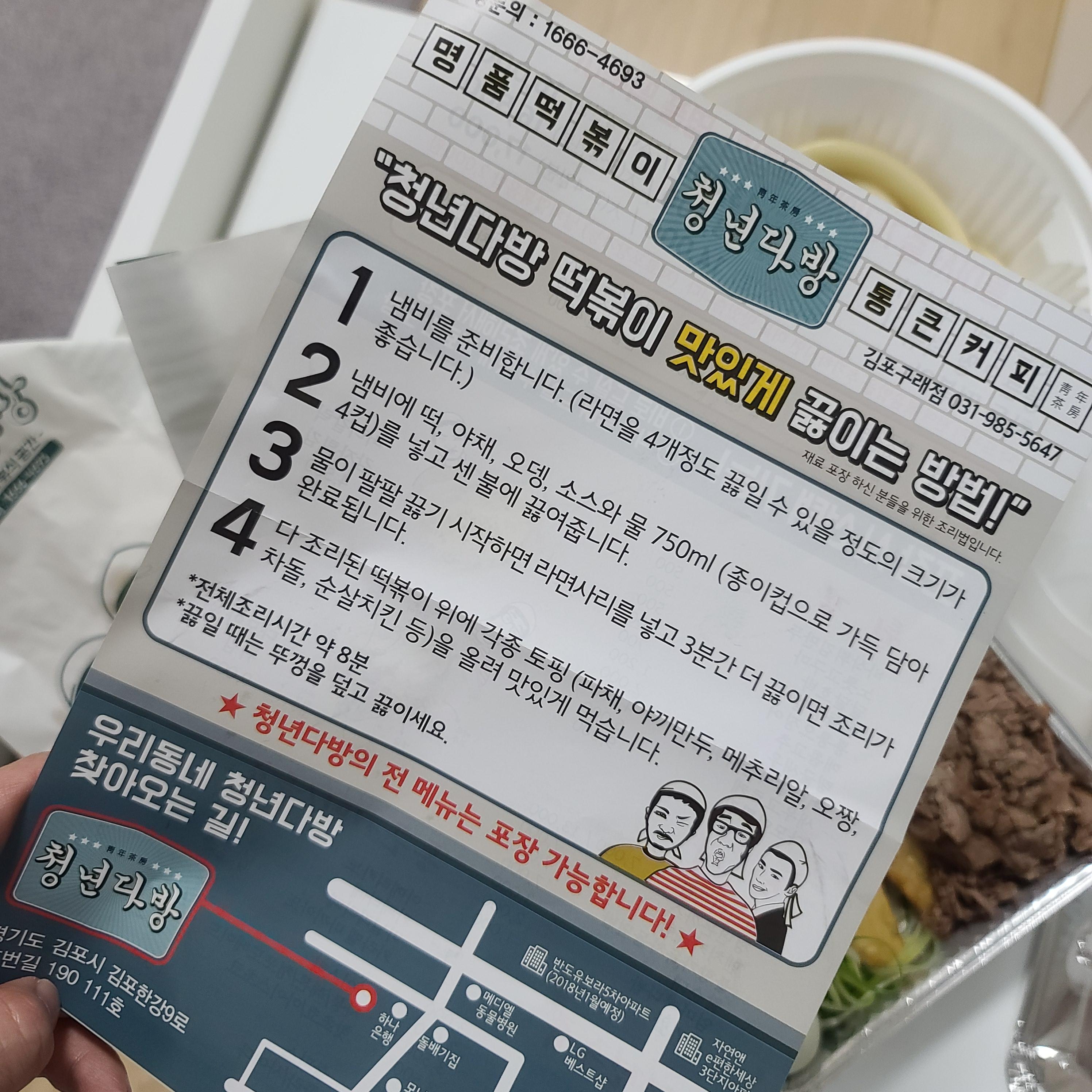 청년다방 떡볶이 김포 구래점 포장!