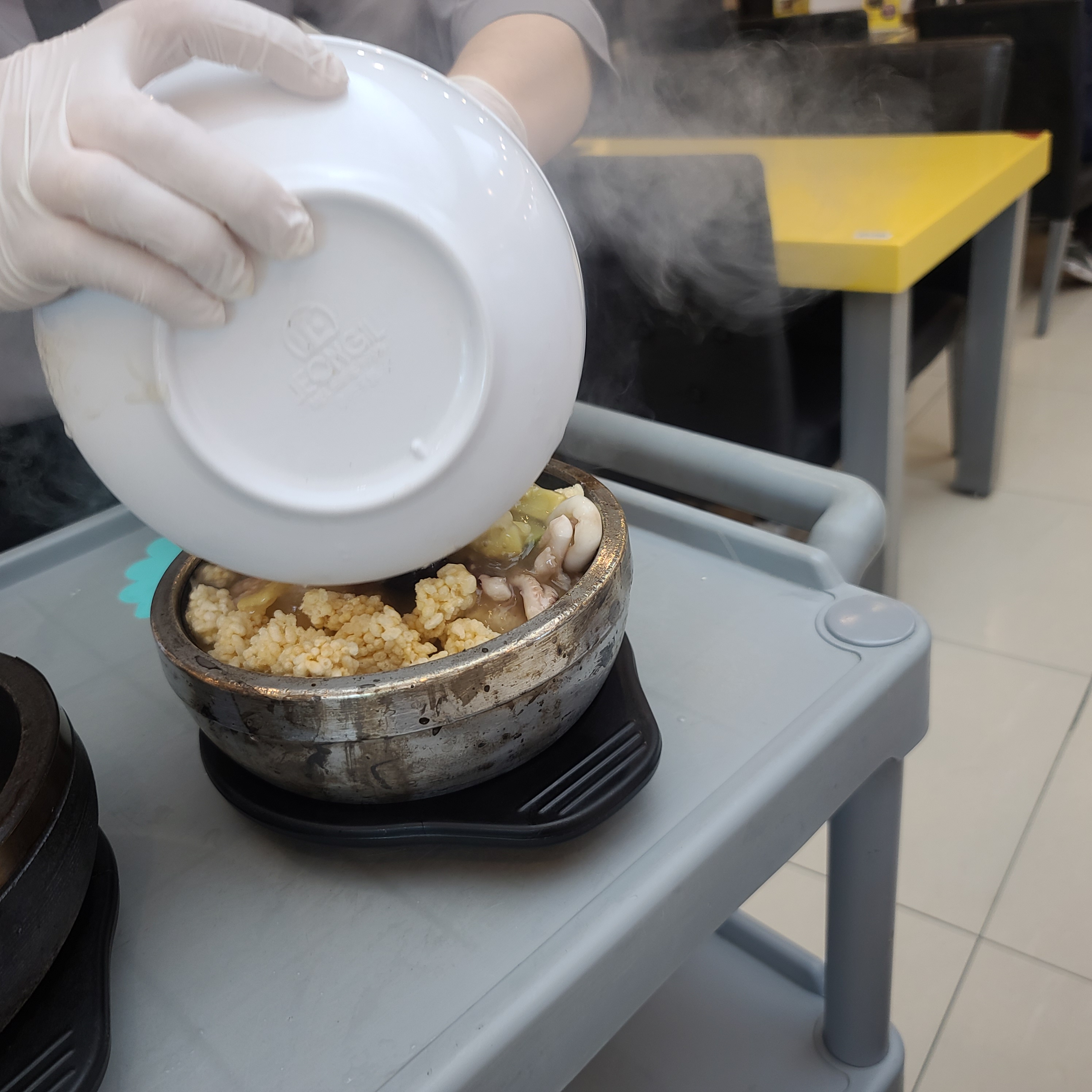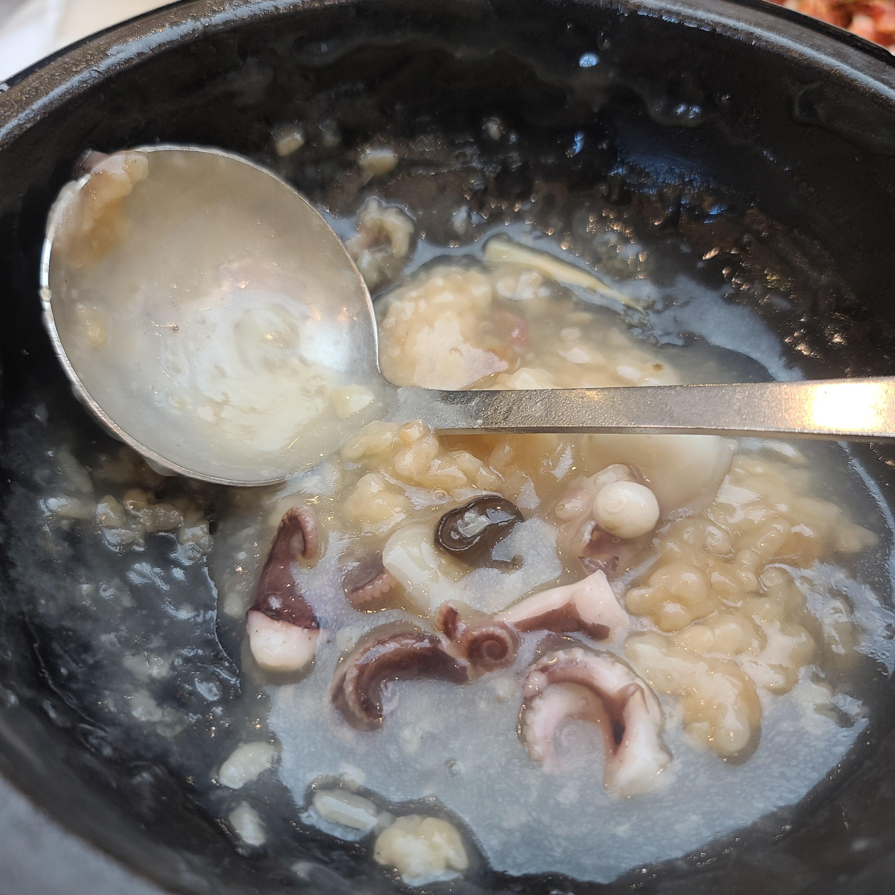 뚝배기에 눈앞에서 해물과 누룽지를 섞어 주신다.