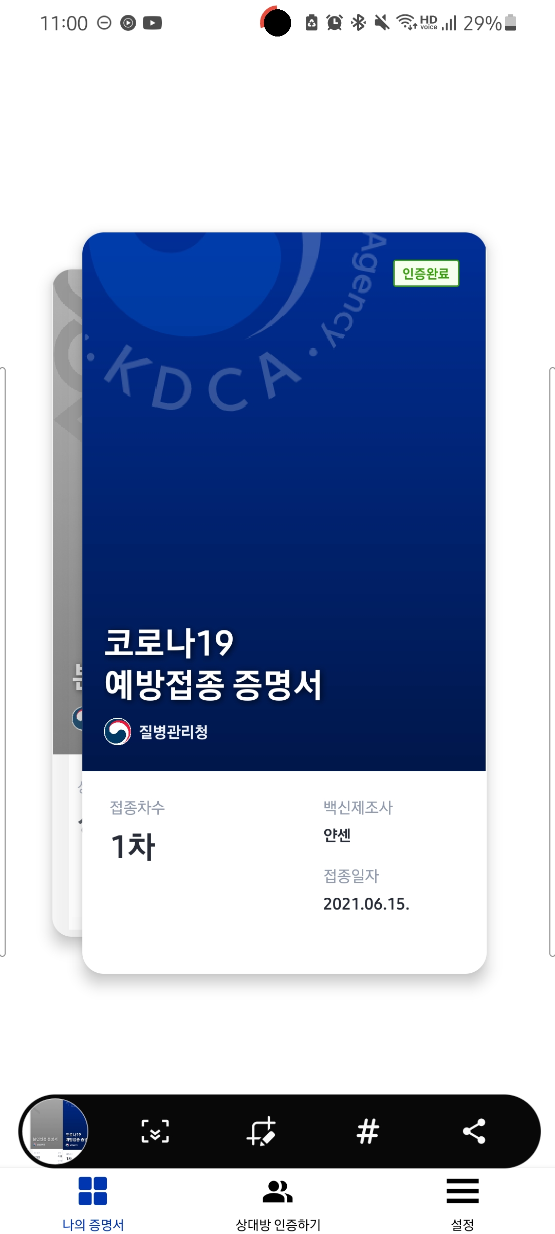 요즘 코로나 접종 인증을 받잖아요~!