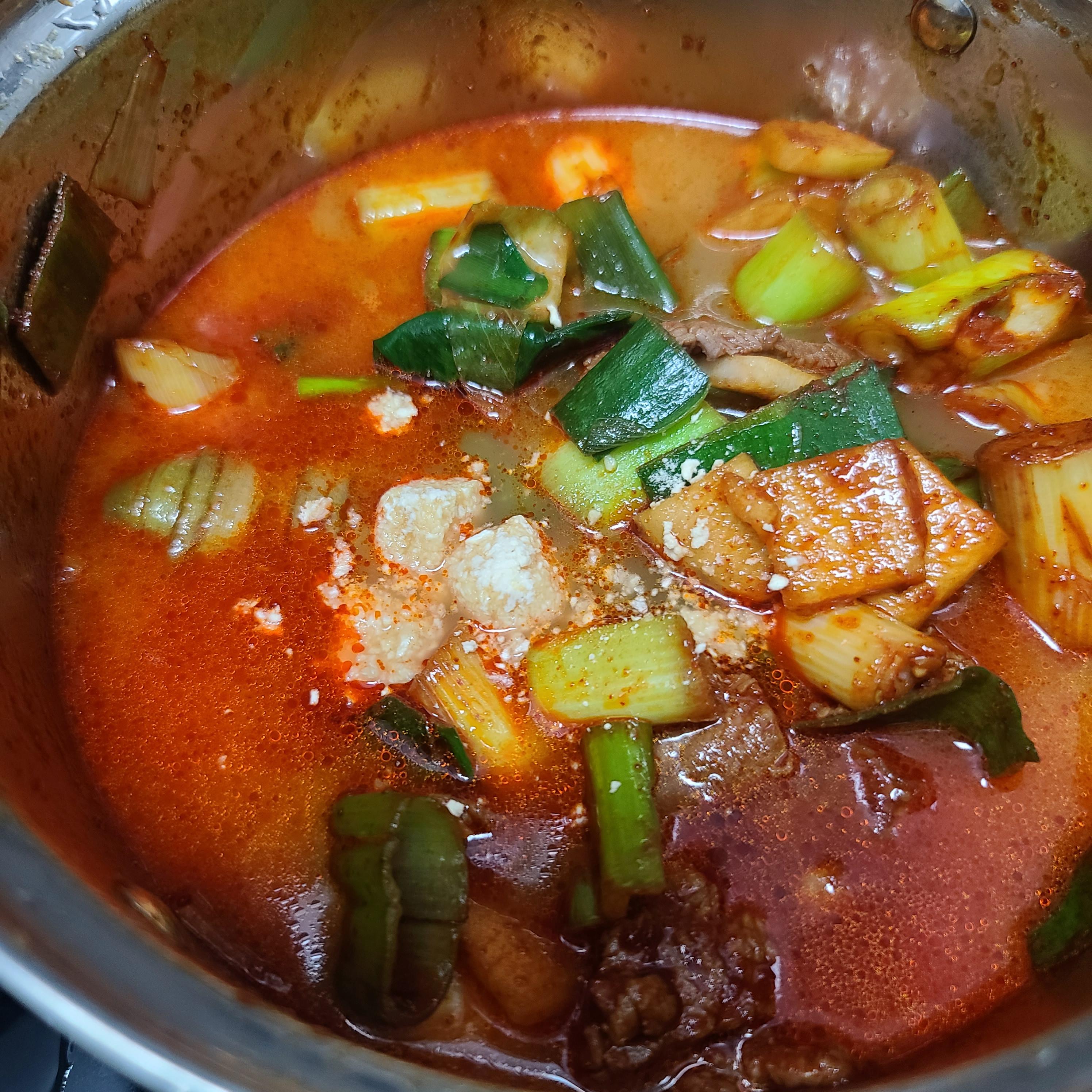 이렇게 끓기 시작하면, 고추기름을 넣어야 하는데;;; ㅋ