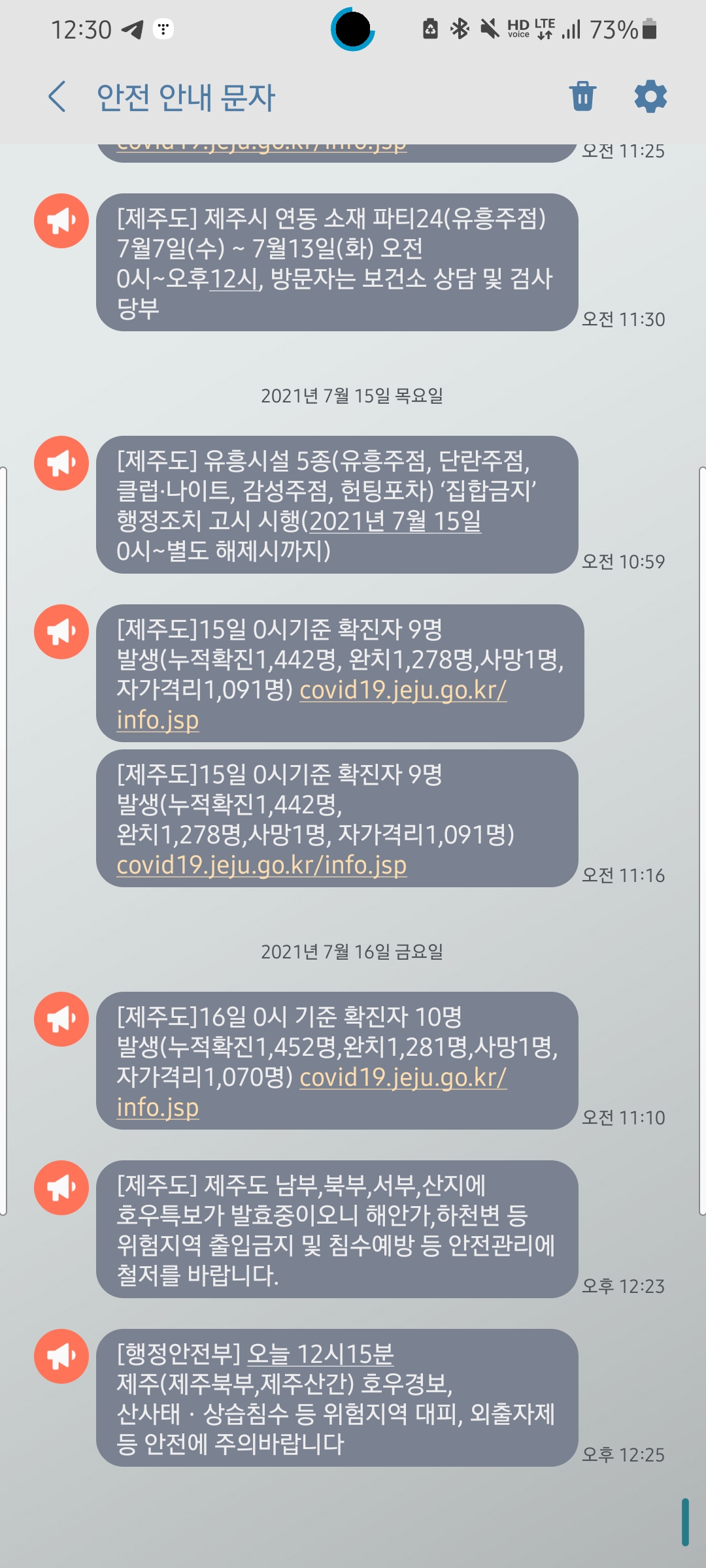 안전 안내 문자가 왔어요.