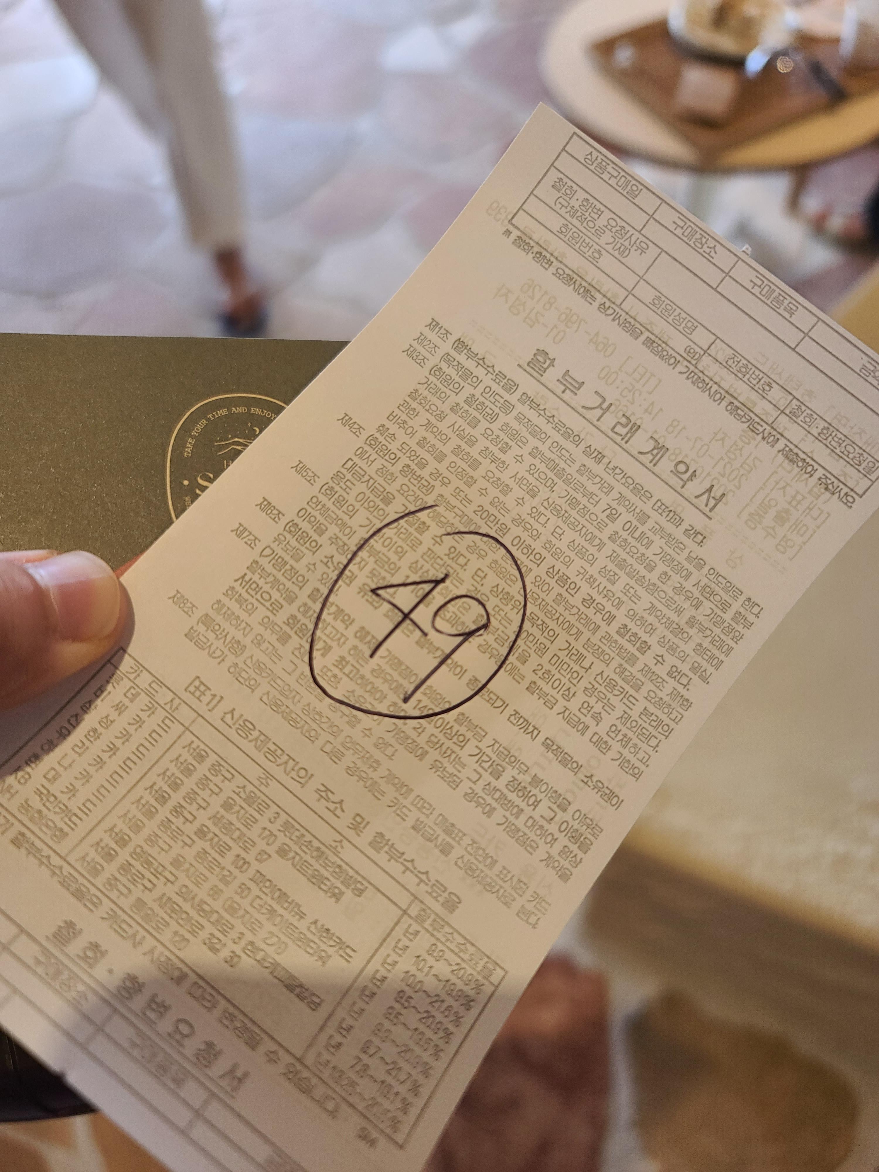 영수증을 가지고 선배드 관리 직원에게!