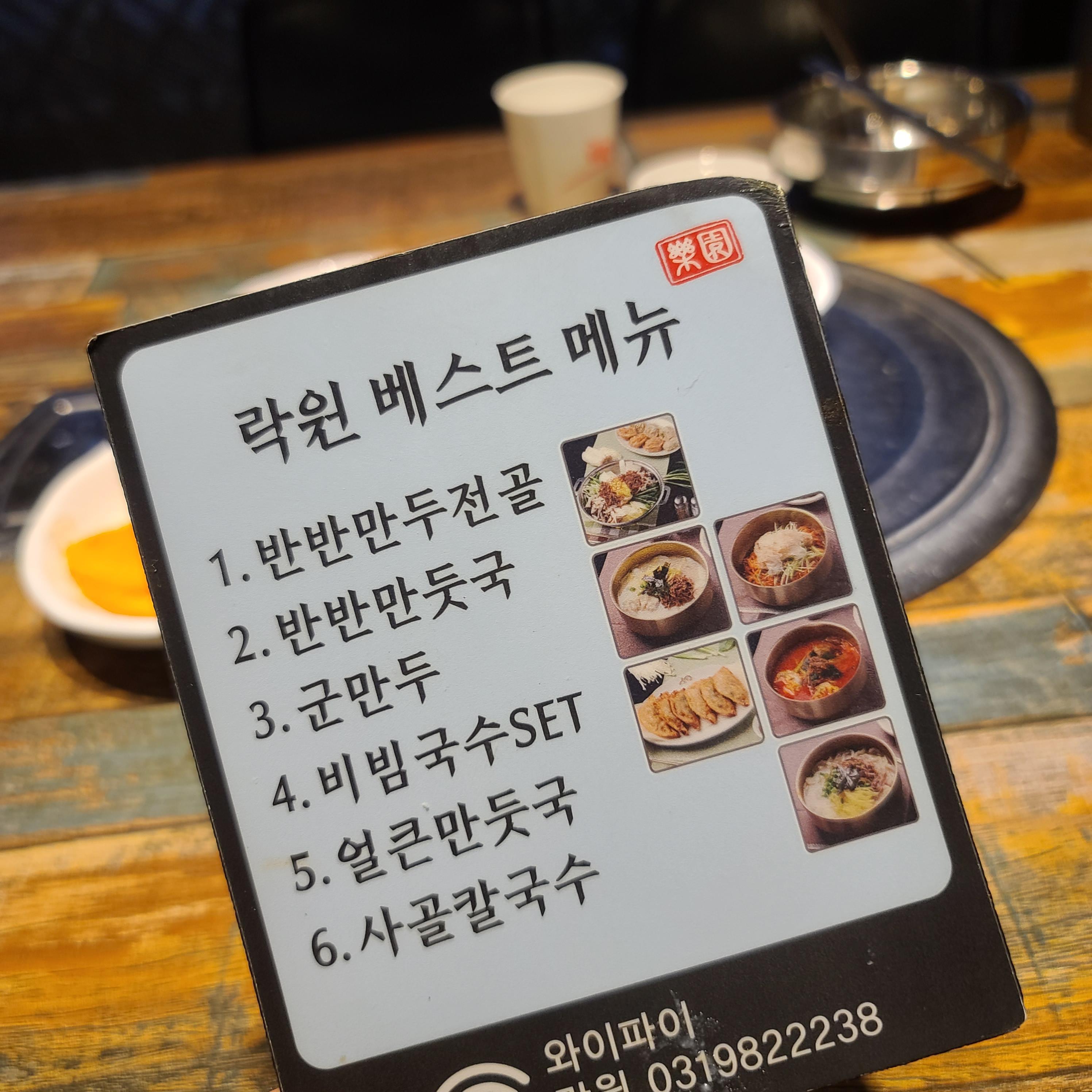 락원이 베스트 메뉴를 안내하는 판도 있었어요.
