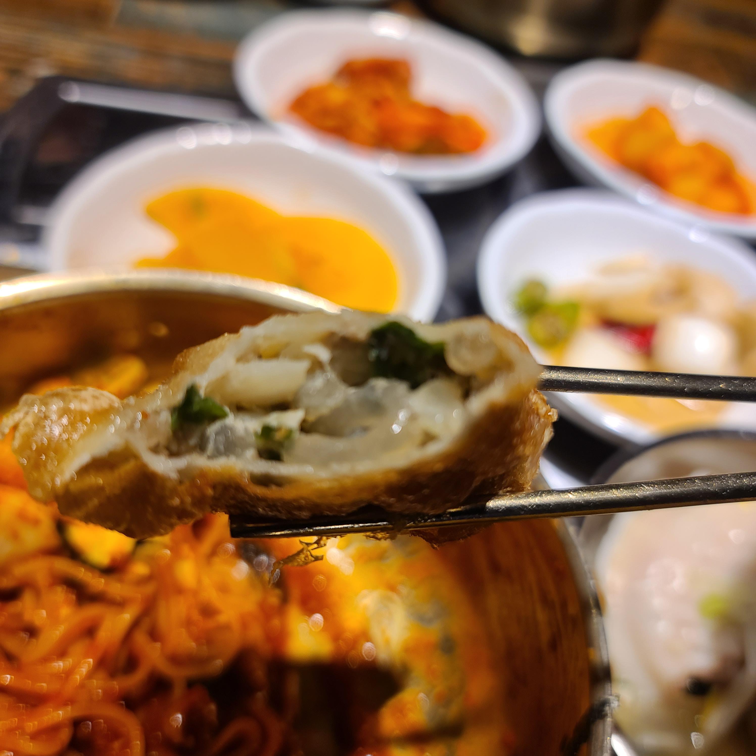 다시 봐도 튀김만두와 붉은 비빔 국수는