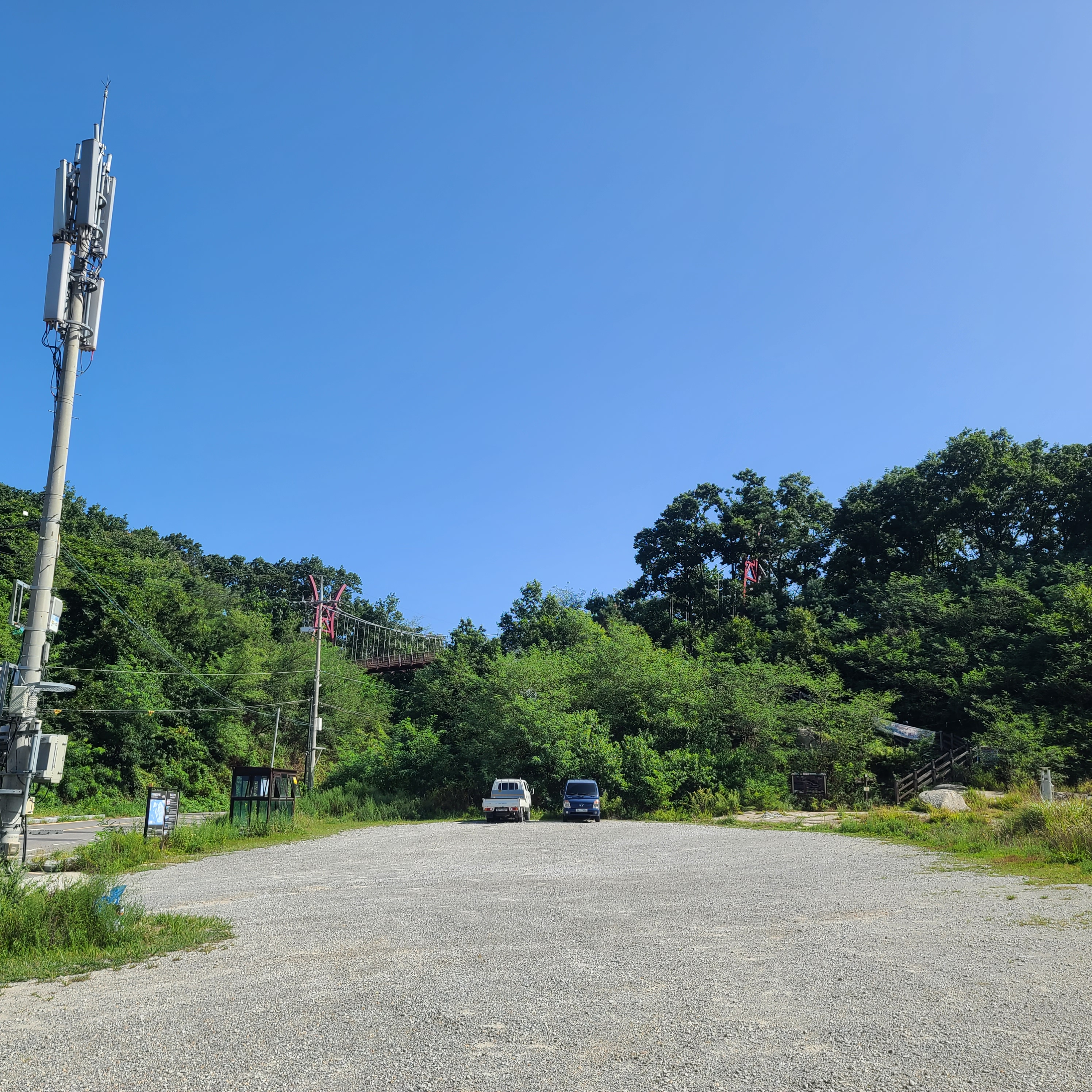 주차한 곳에서 길 건너 등산하시면 출렁다리를 건너지 않고!