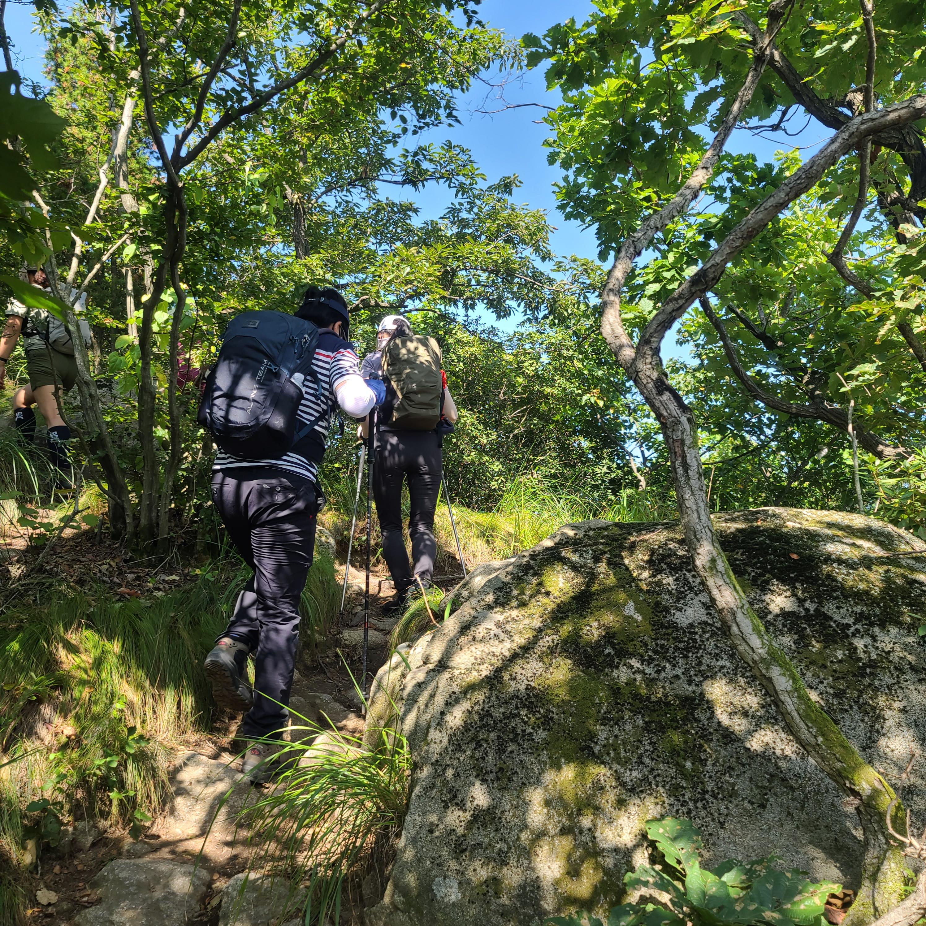 바위가 많으니 미끄럽지 않은 등산화로~!