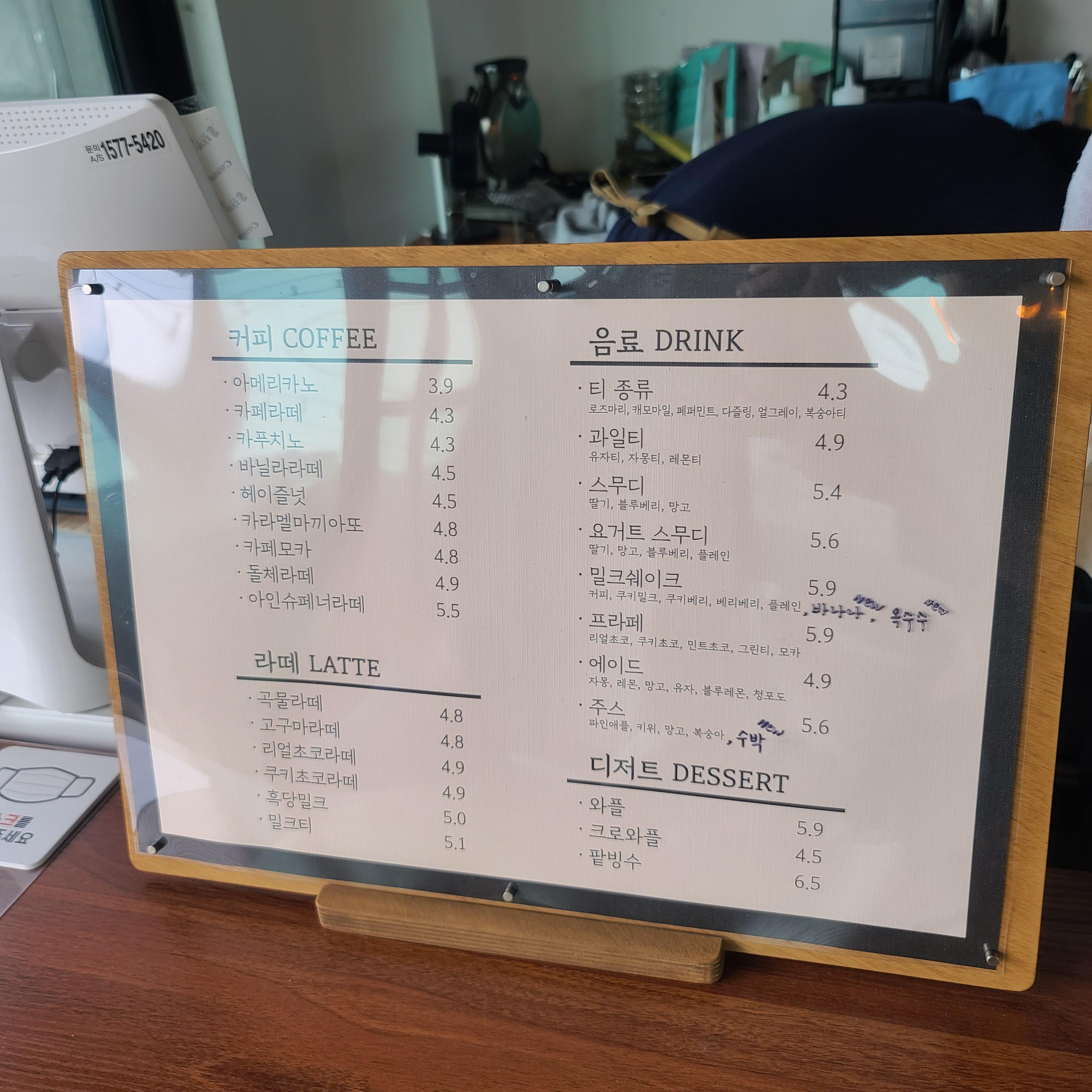 와이온리의 카페는 메뉴가 이렇습니다.