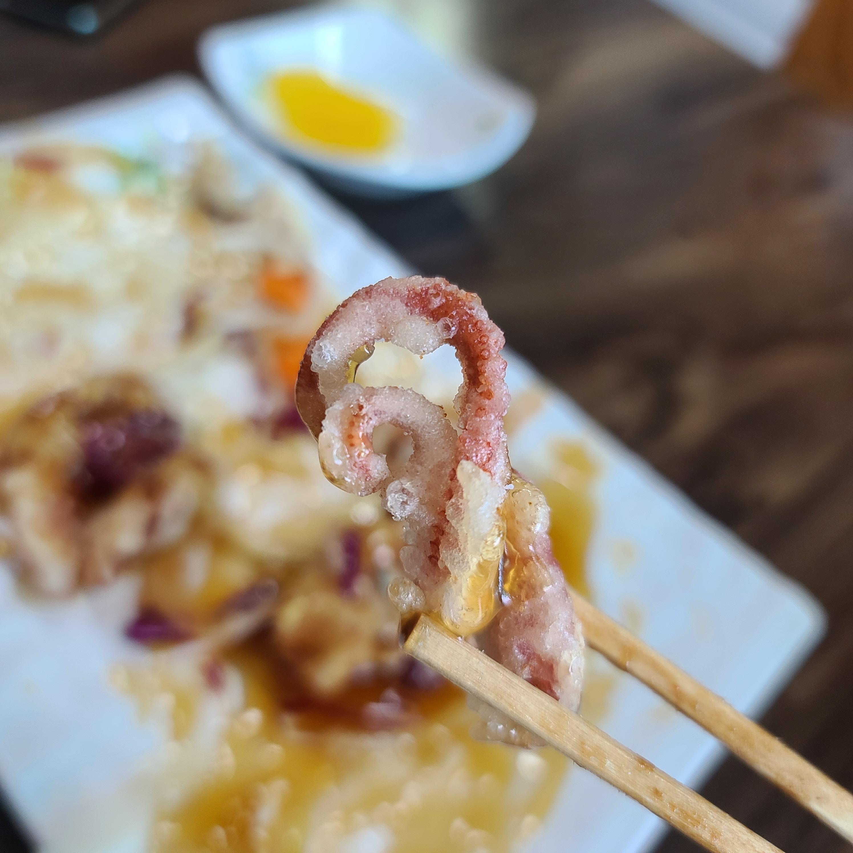 (먹어보니, 오징어튀김, 문어 튀김 이런 느낌)