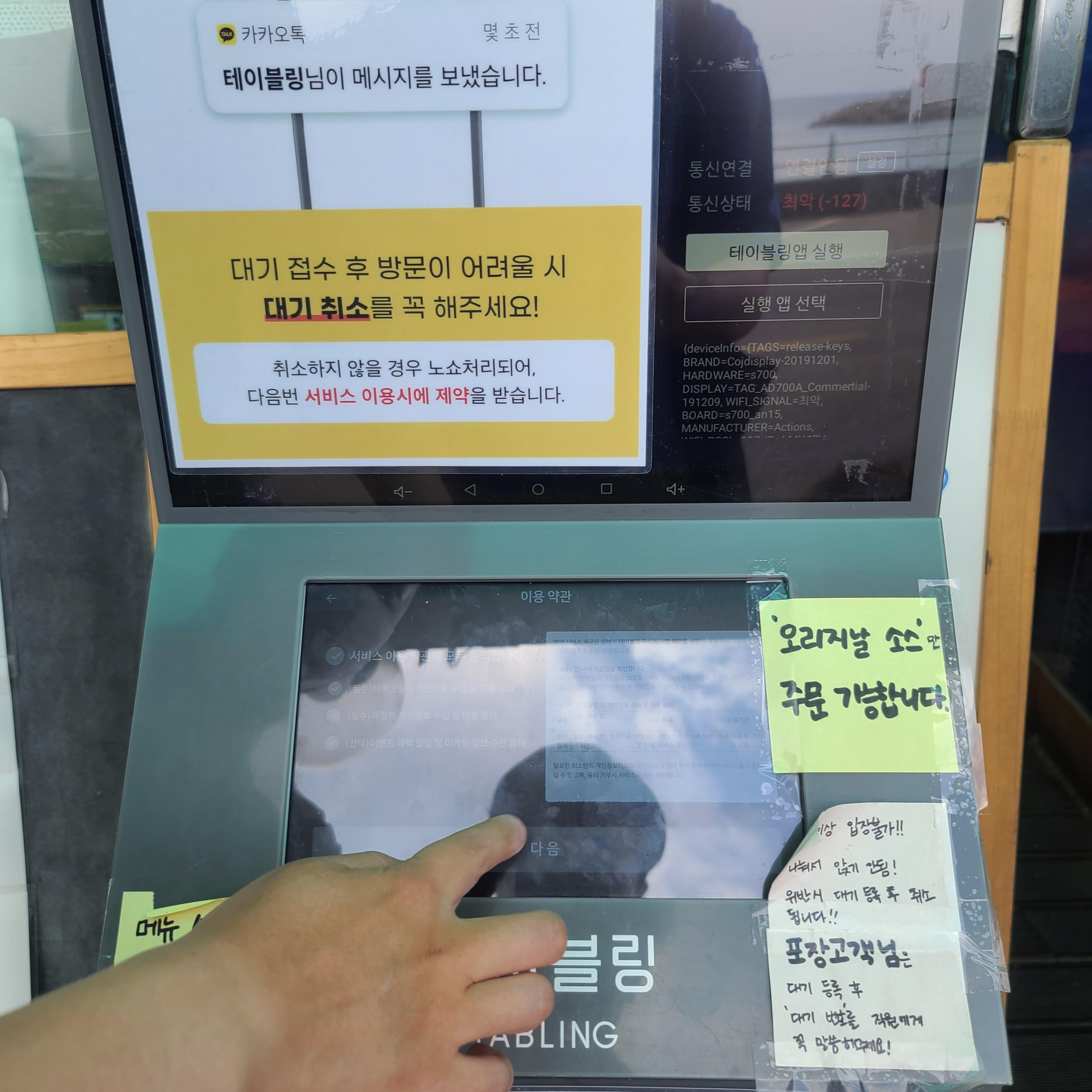 앞에서 테이블링 으로 바로 주문하고