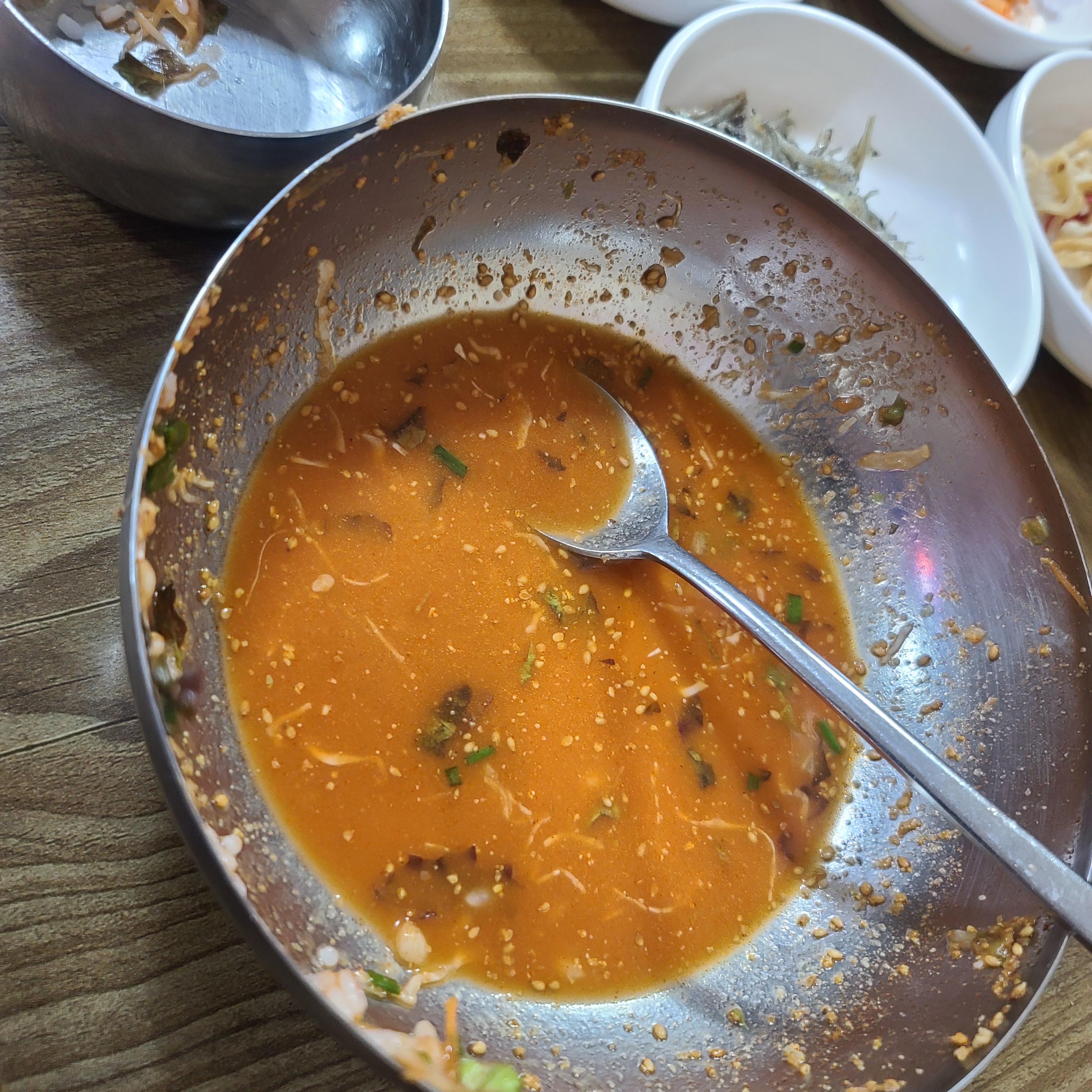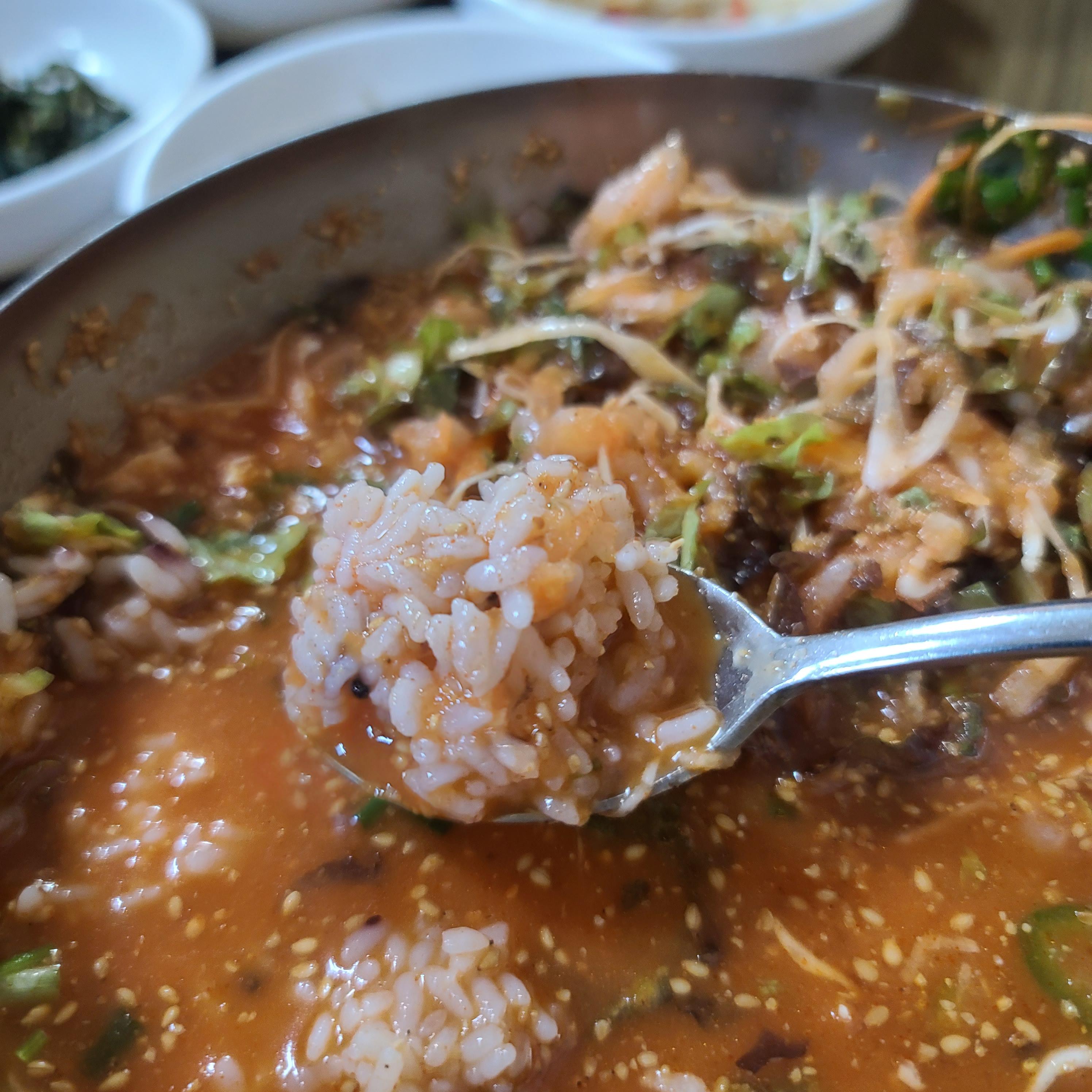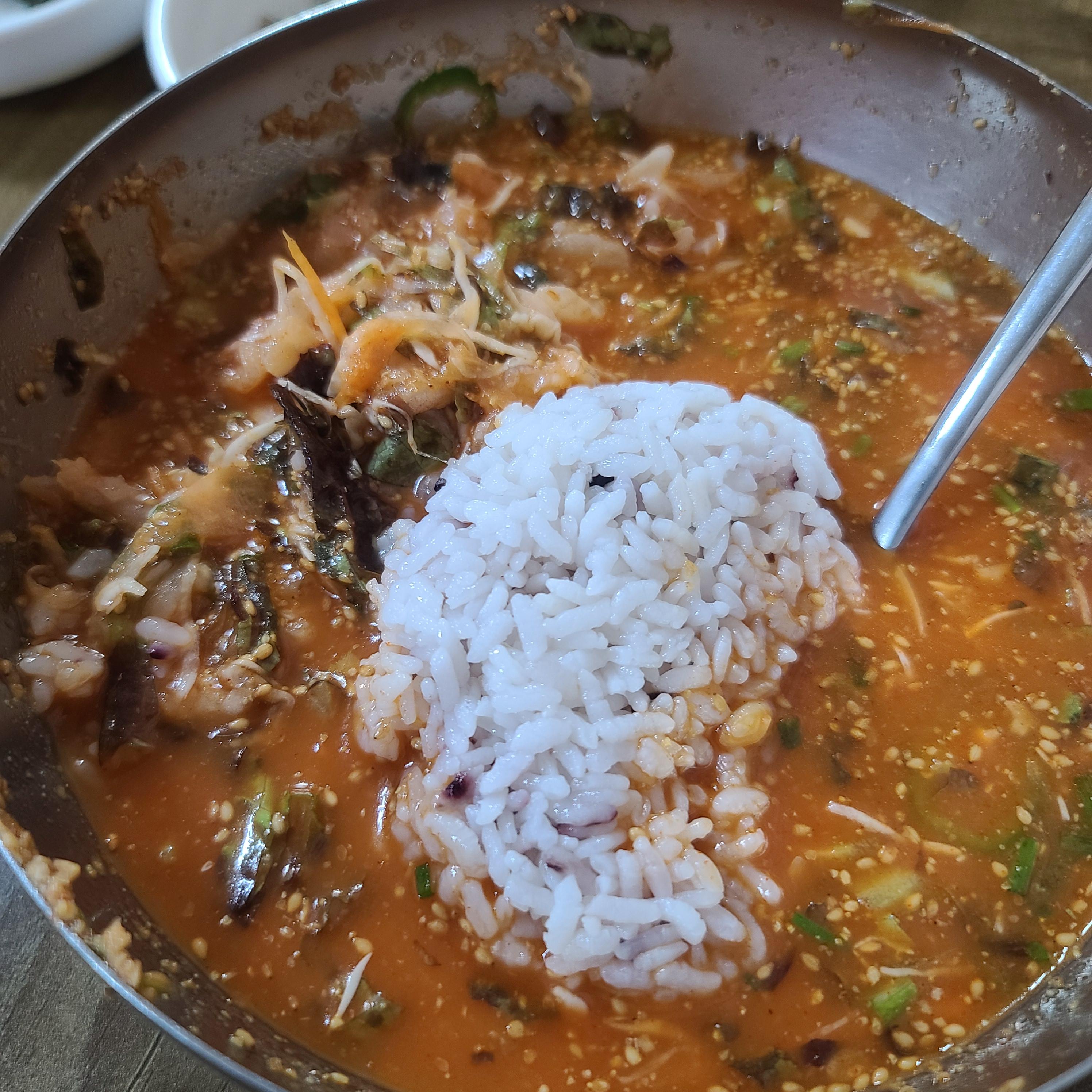 그렇게 먹다가 밥을 왕창 말아서 먹었습니다.