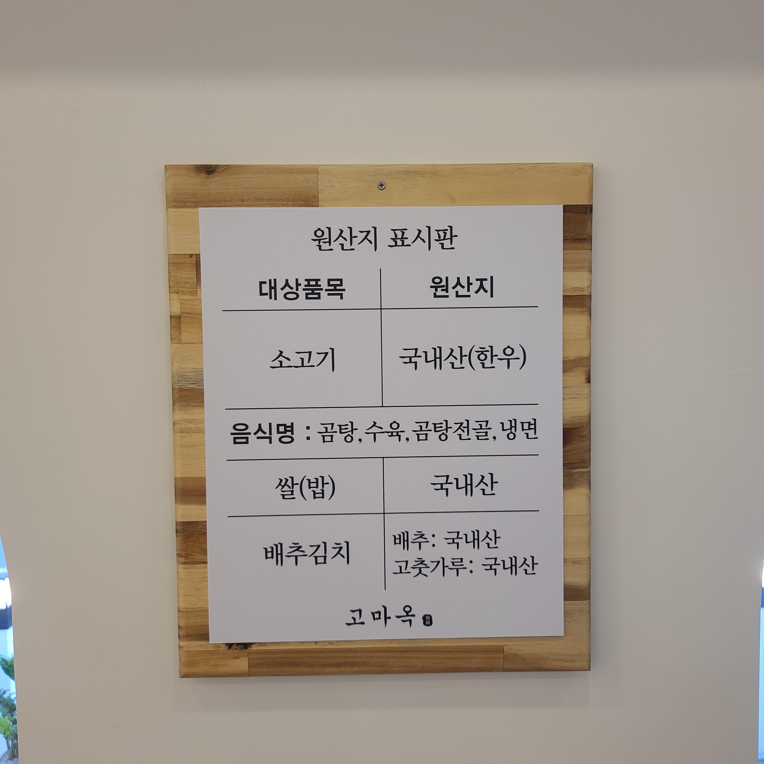 고마옥의 메뉴를 보랏! ㅎ