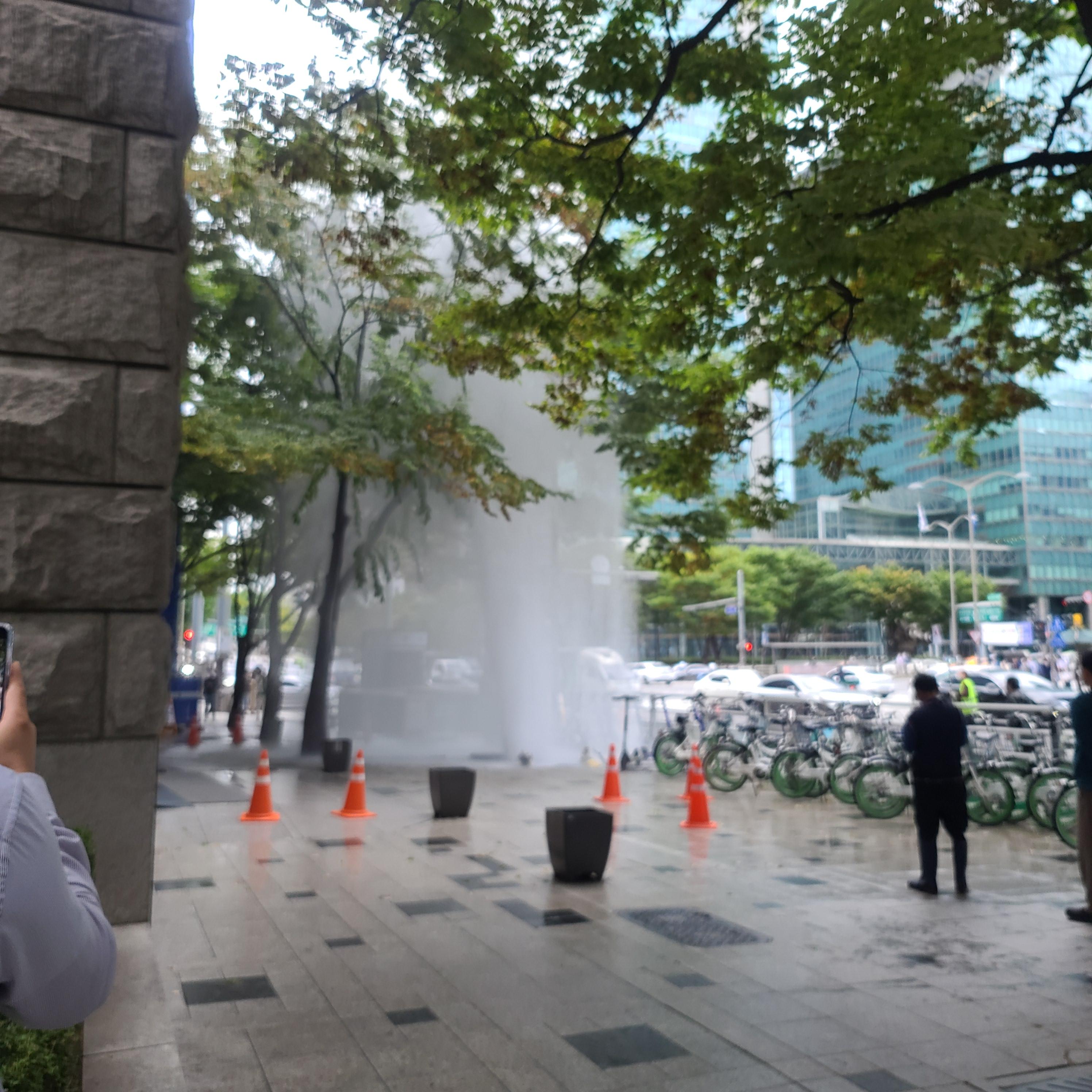 강남 한복판에서 정말 분수... 딱 점심 먹으러 나갈 때 물줄기를 만나고,