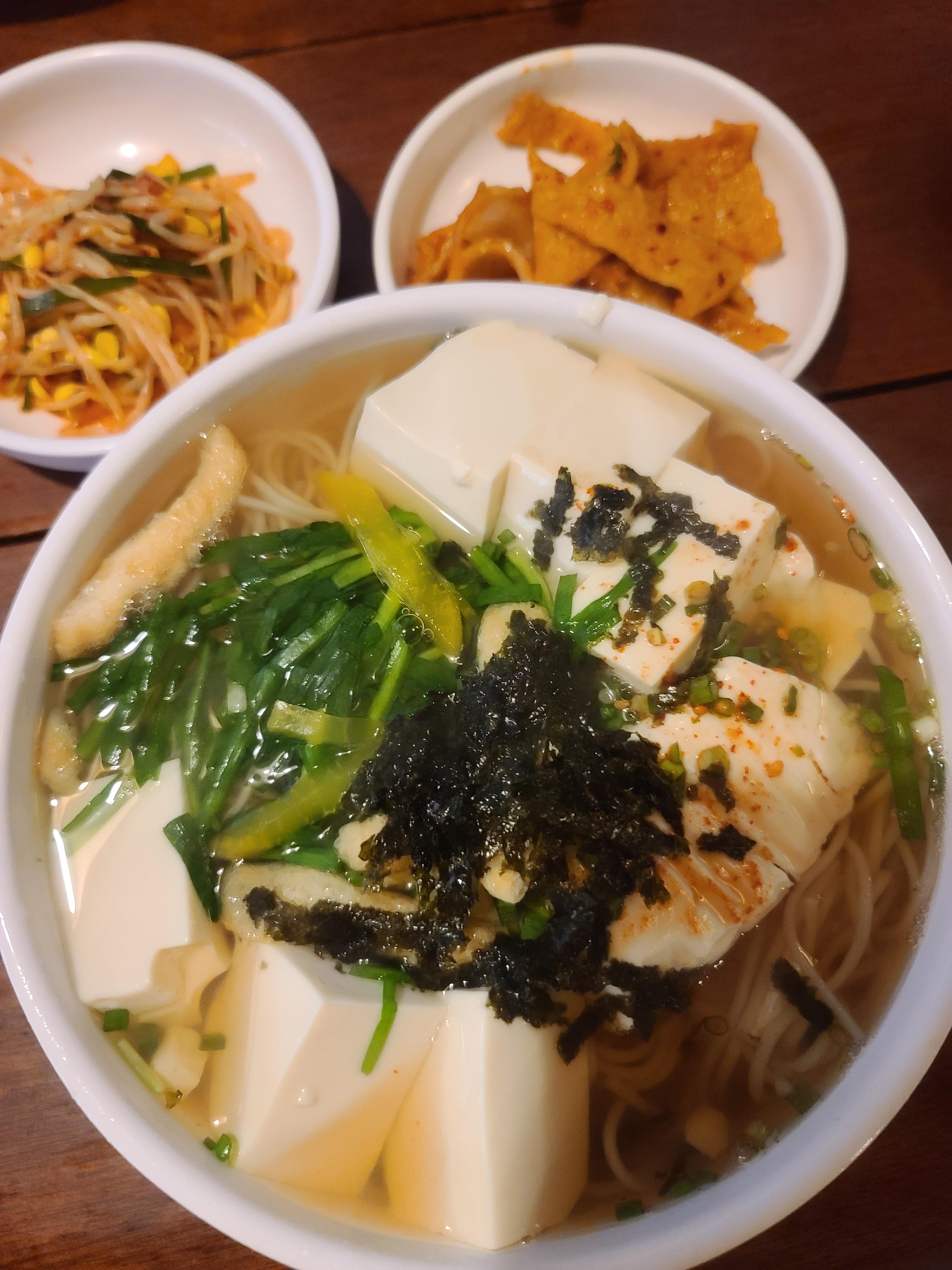 순두부가 가득 들은 멸치국수이다!