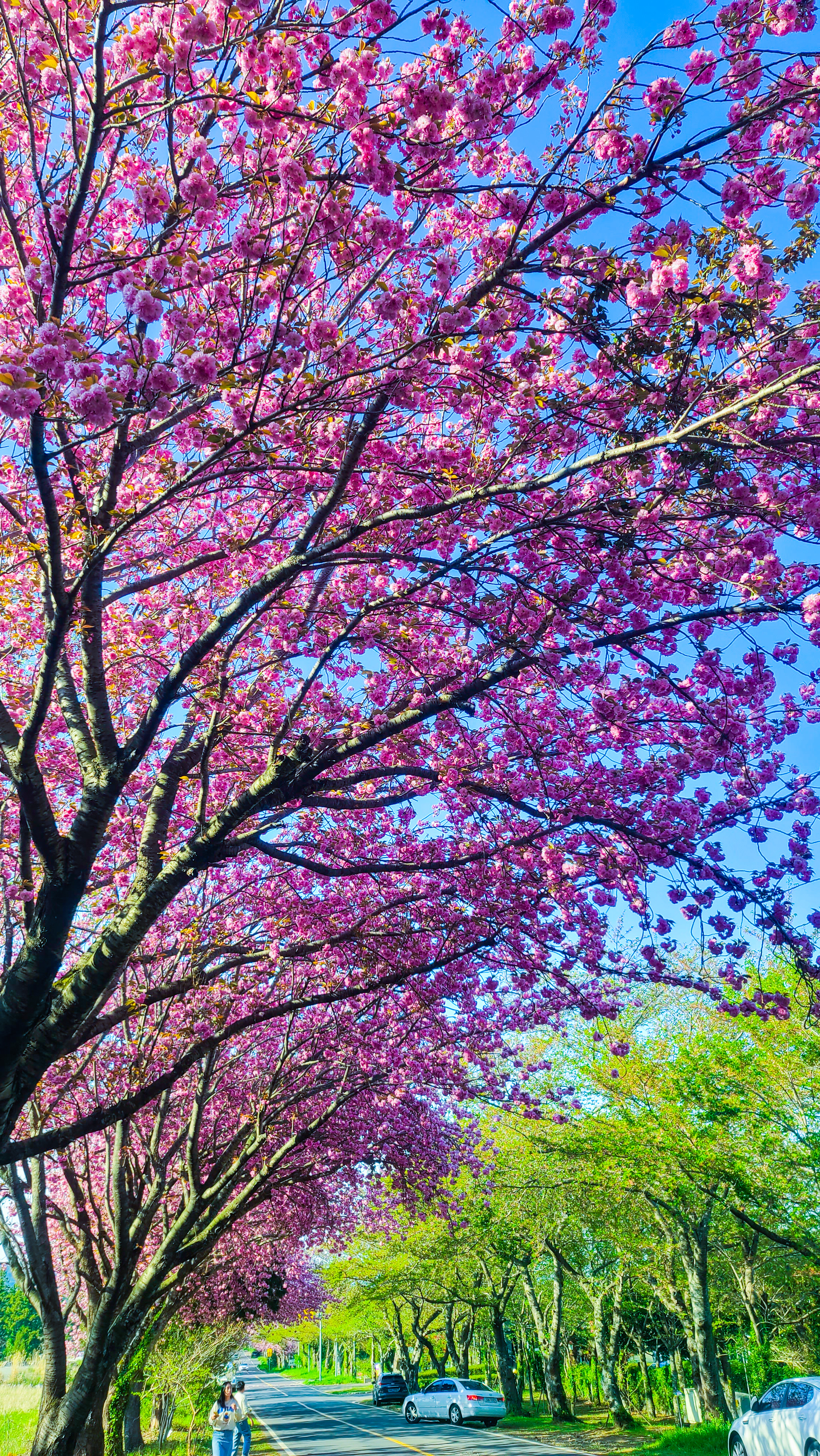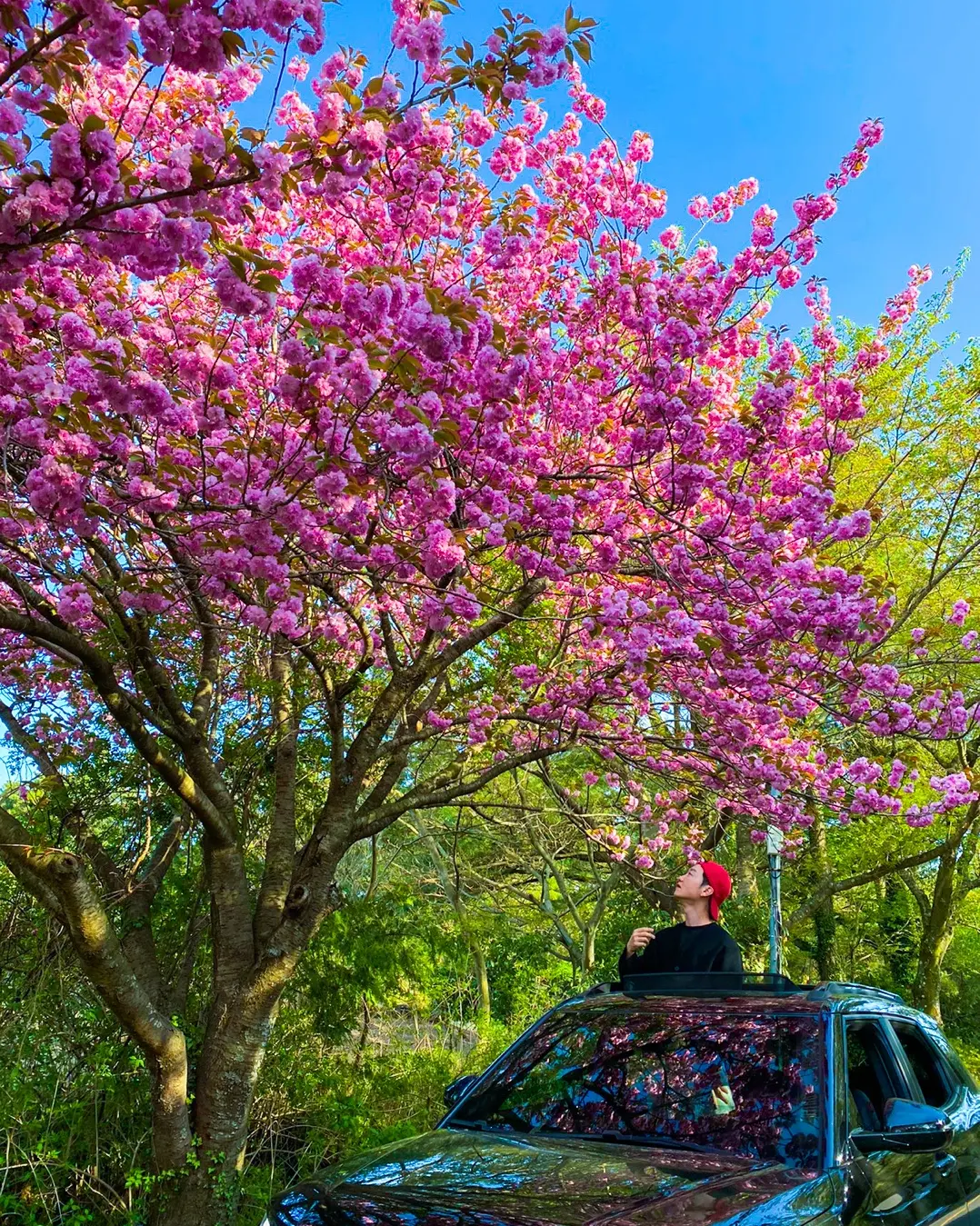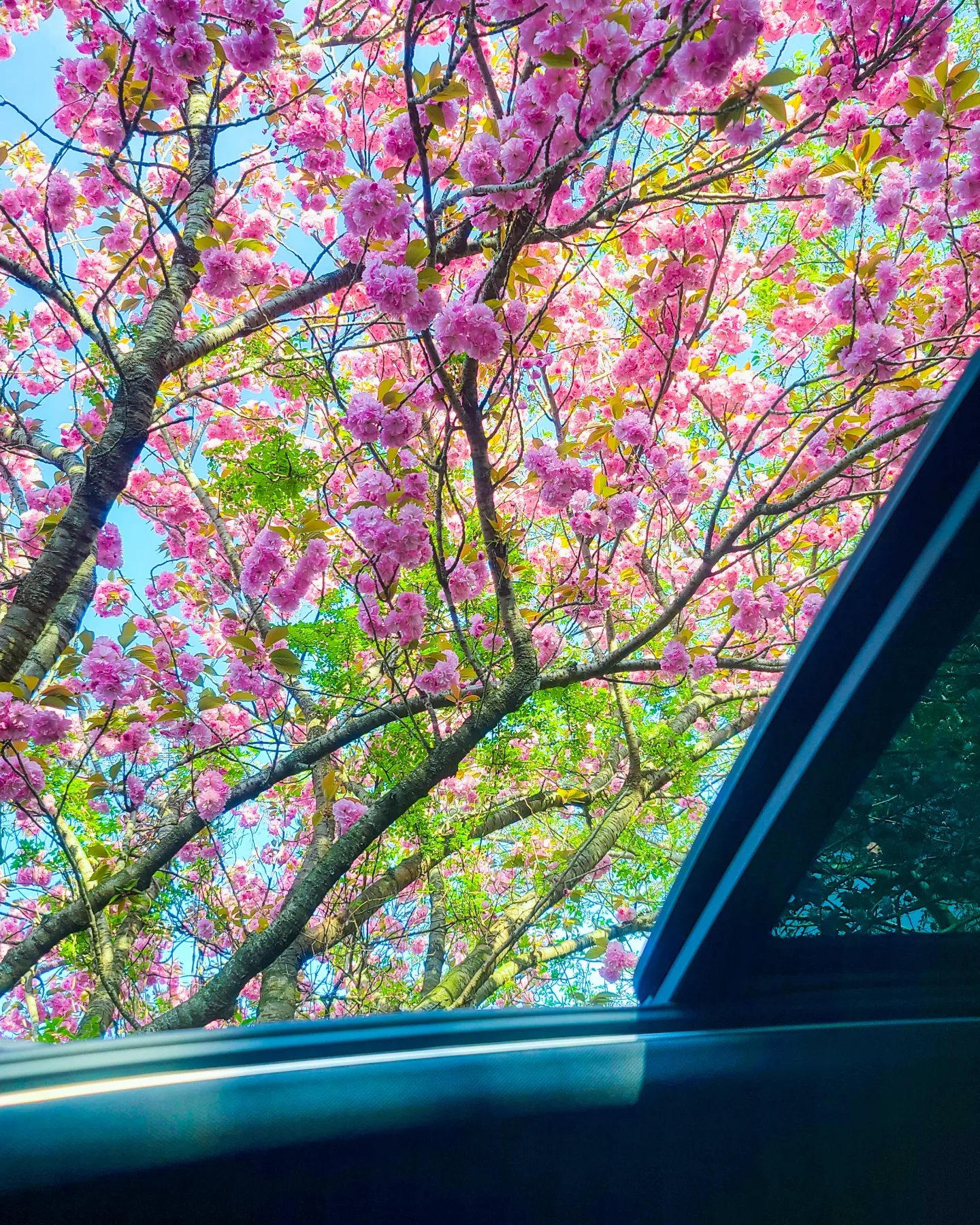 차 위로 보는 겹벚꽃~! 너무 아름다웠어요!