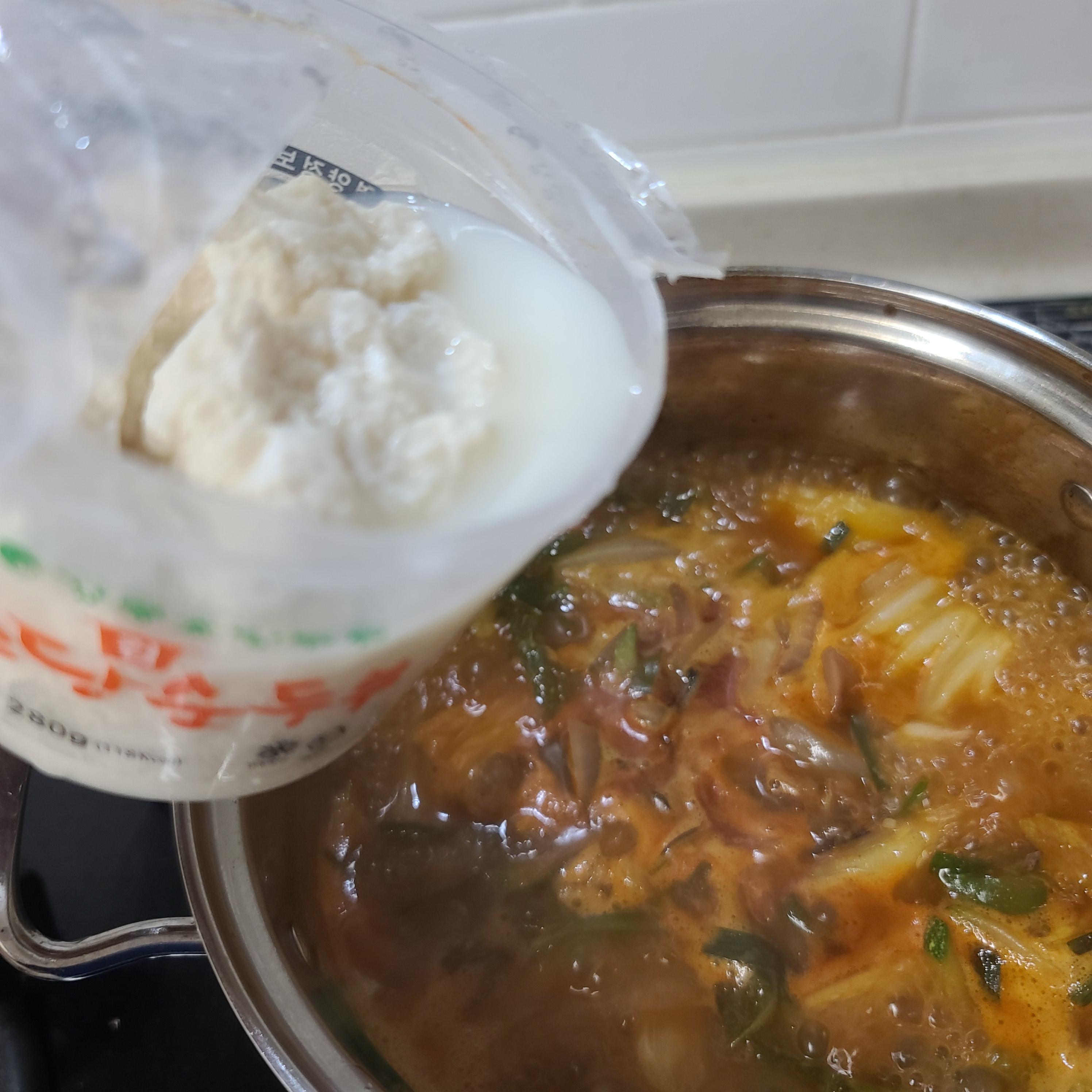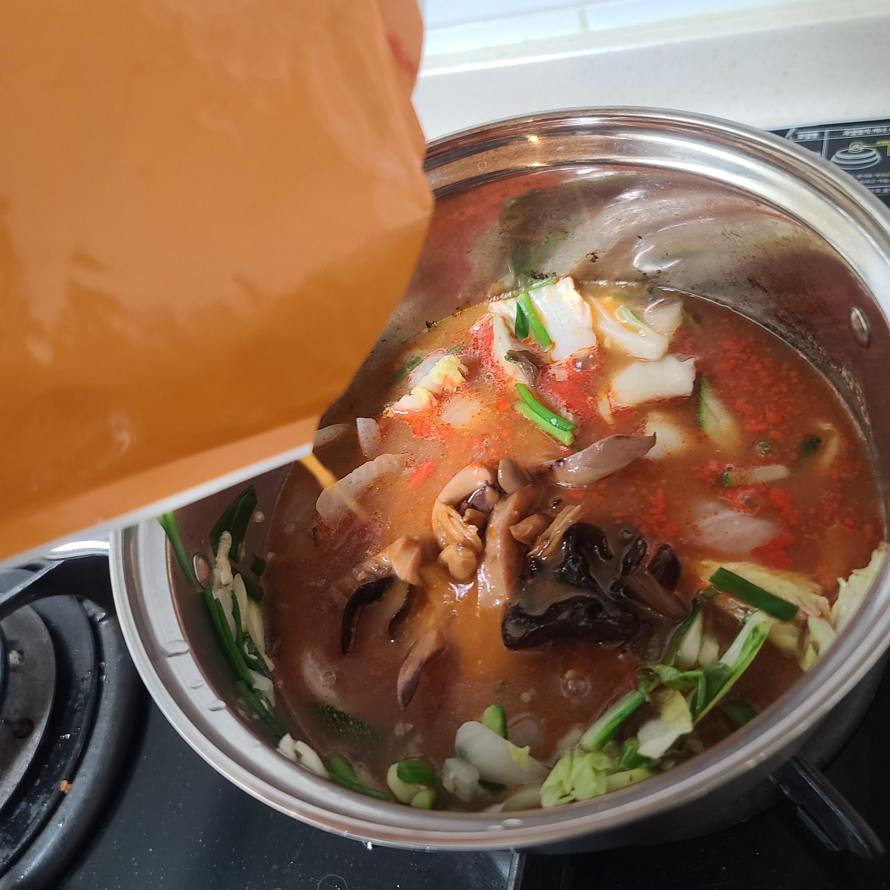 펄펄 끓기 시작할 때 순두부 친구를 넣어줍니다.