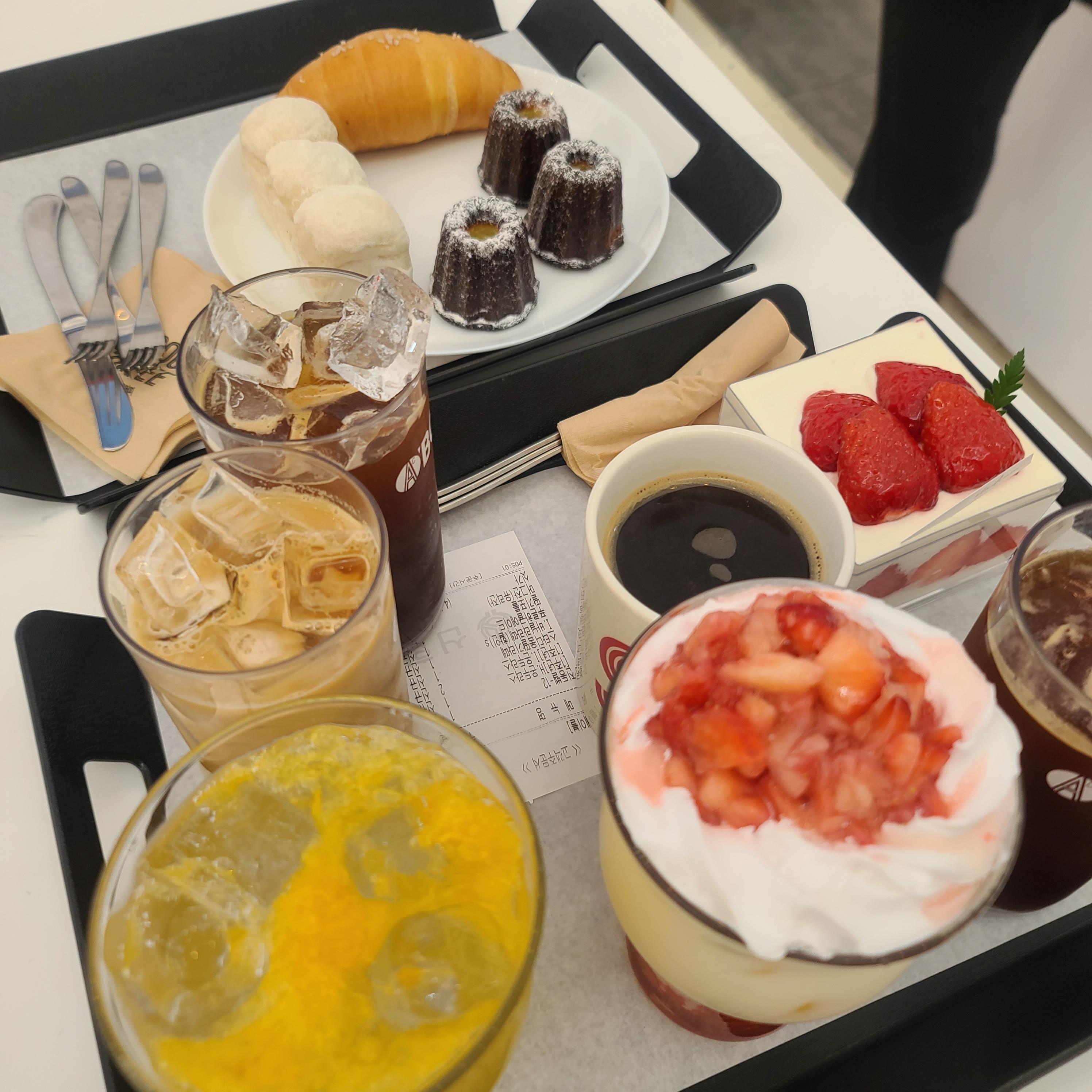 이것저것 음료와 디저트를 주문하고 기다려 봅니다.