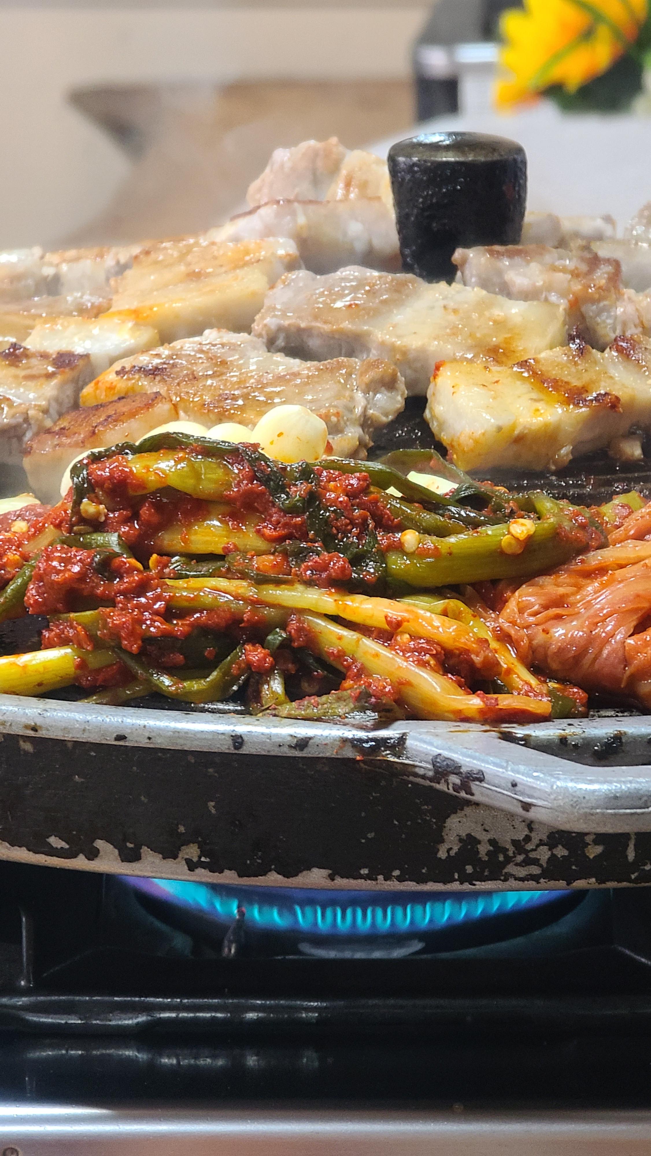 우리는 오늘 삼겹살과 김치 짜글이를 먹었고~~~