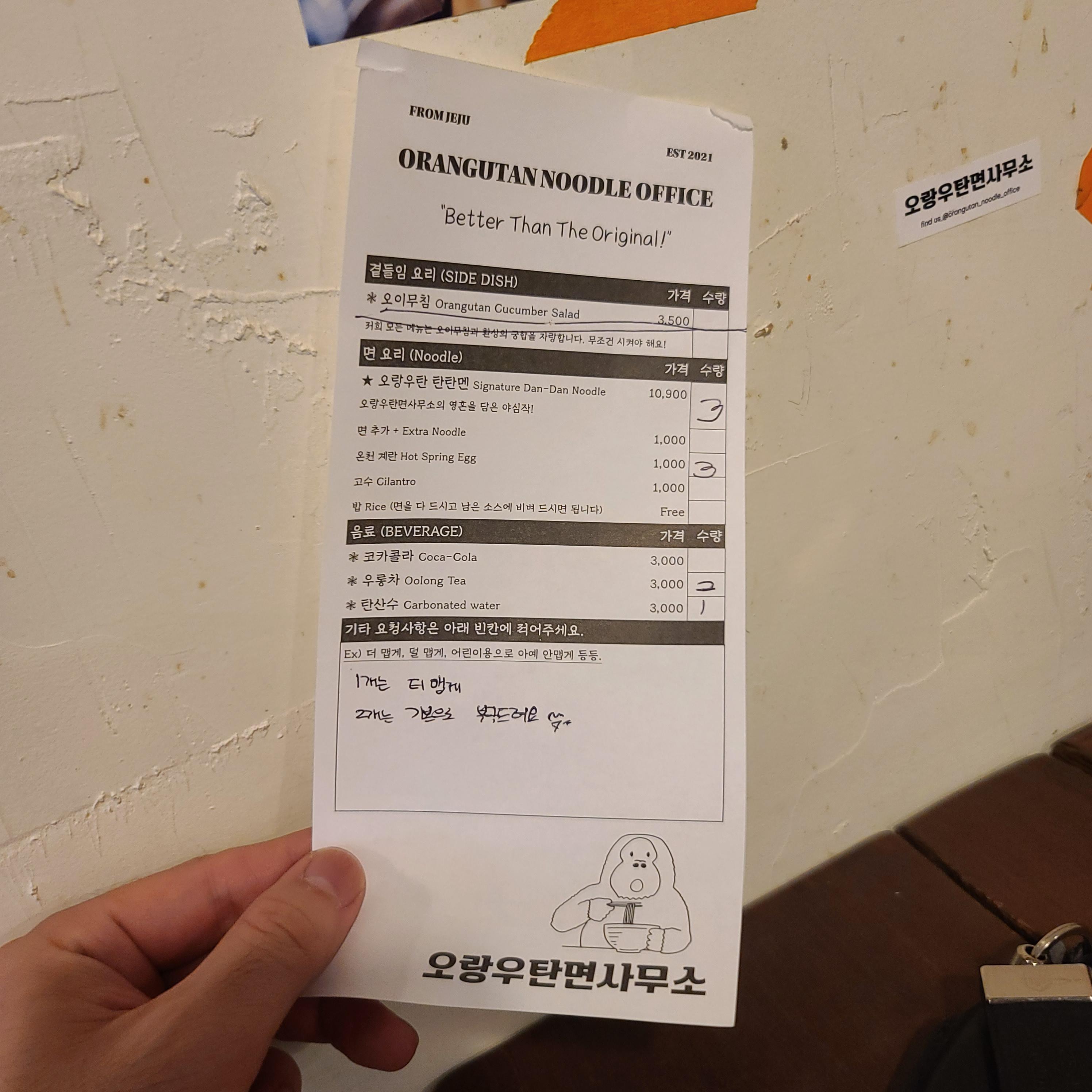 오랑우탄탄면 단일 메뉴 10,900원!