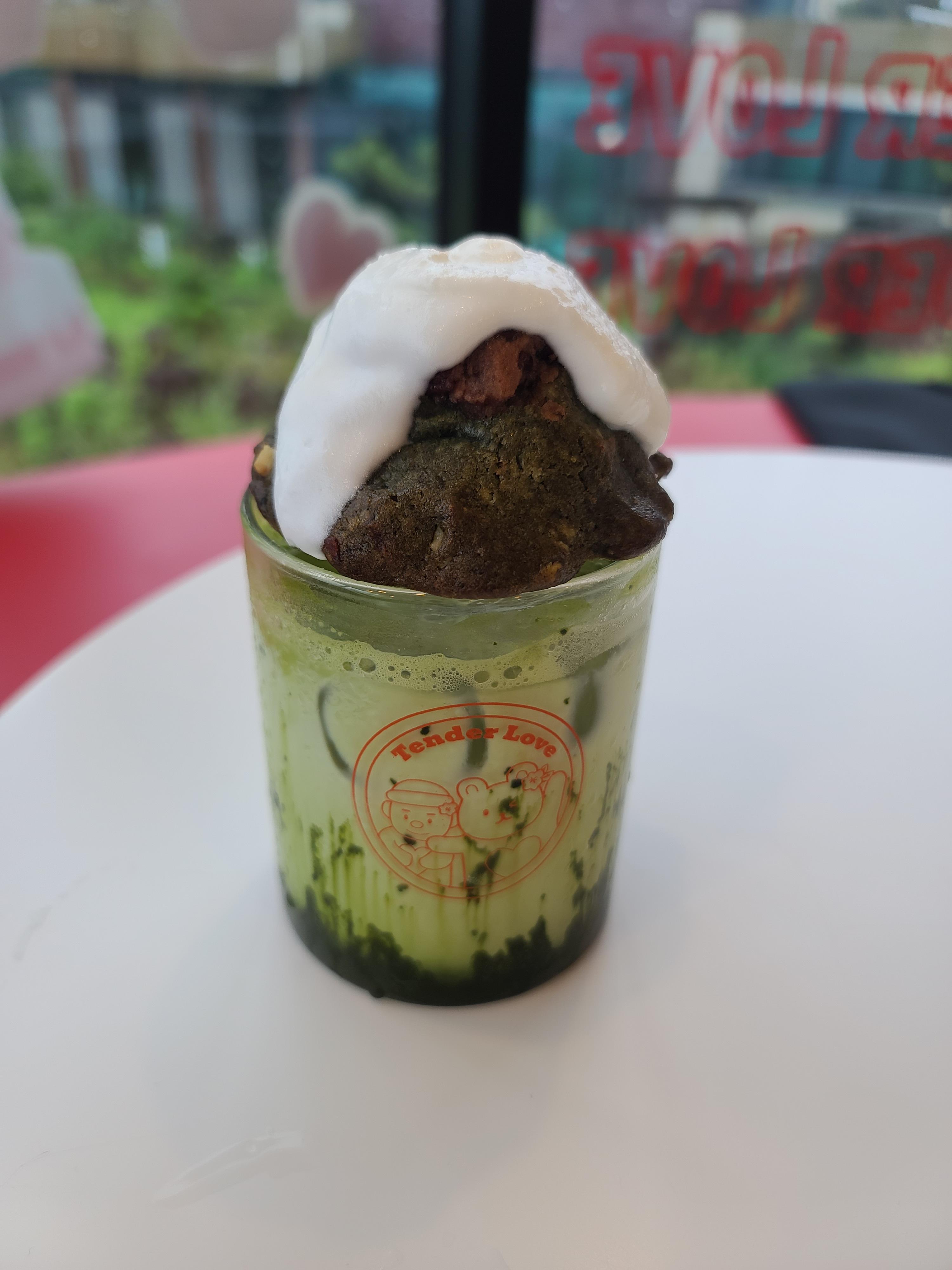 말차 음료와 한라산 쿠키를 같이 주문합니다.