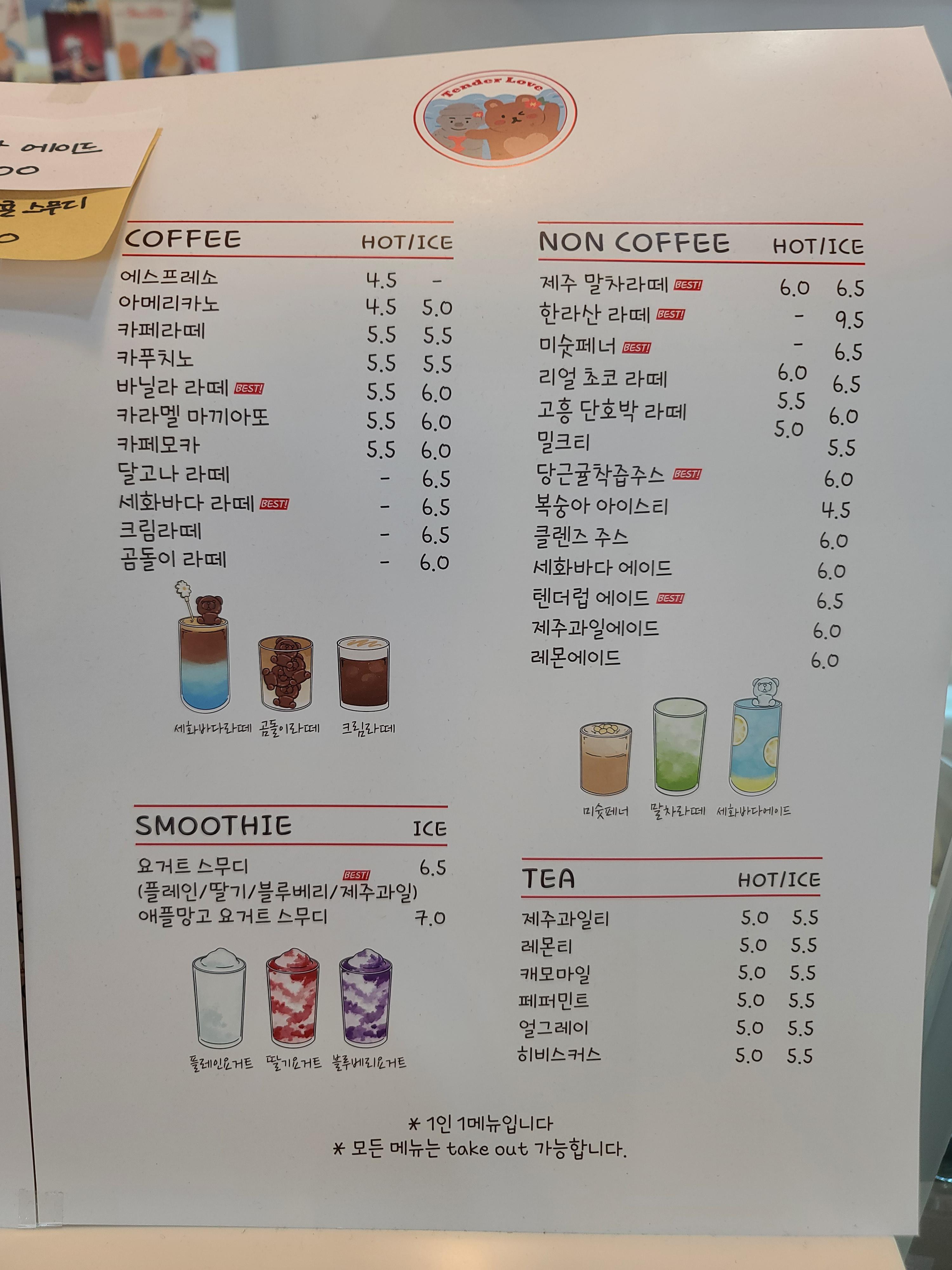 카페 메뉴를 살짝 보고 갑니다.