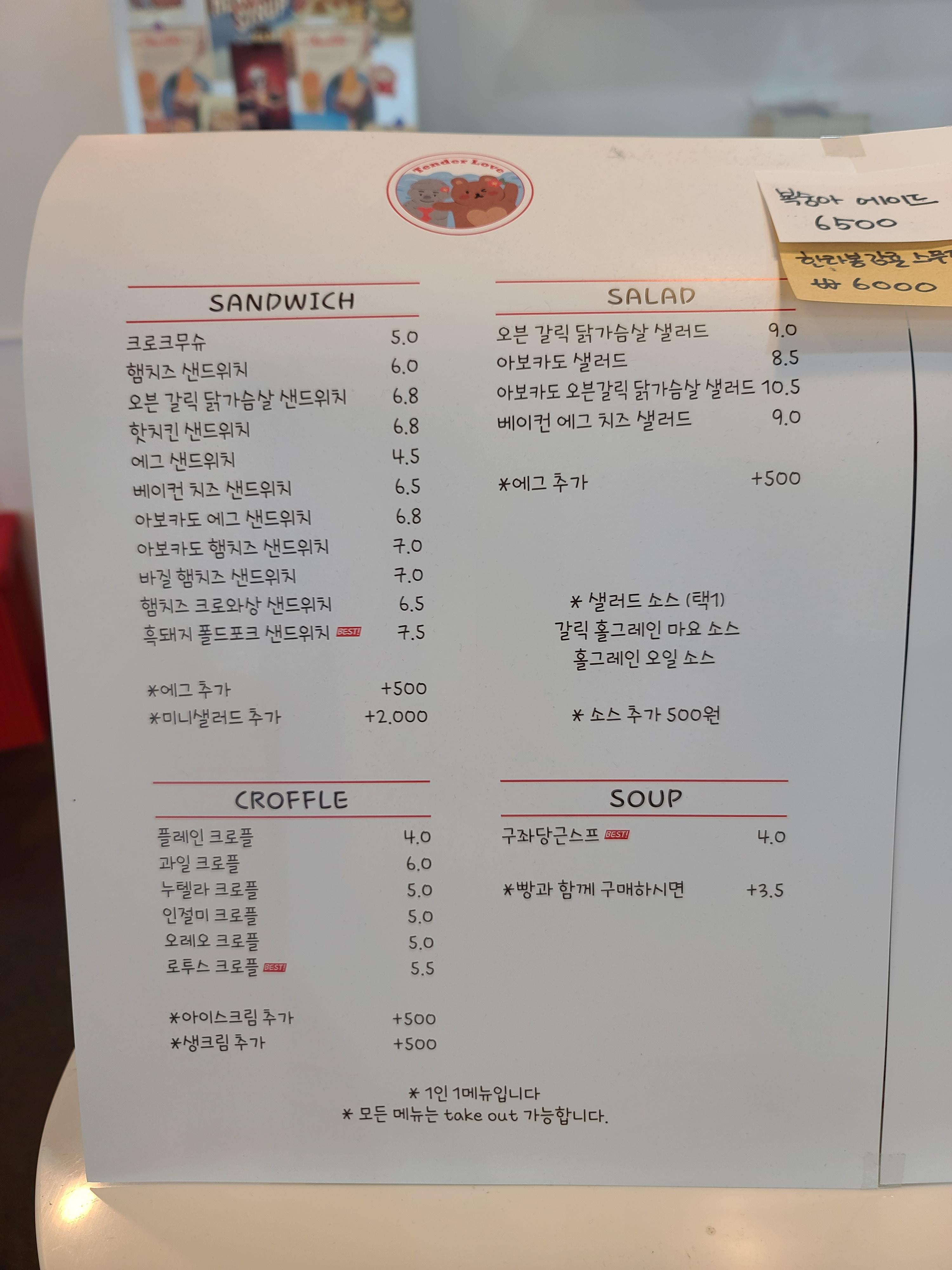 카페 텐더 럽~! 최소 5개 이상 포장이 가능!