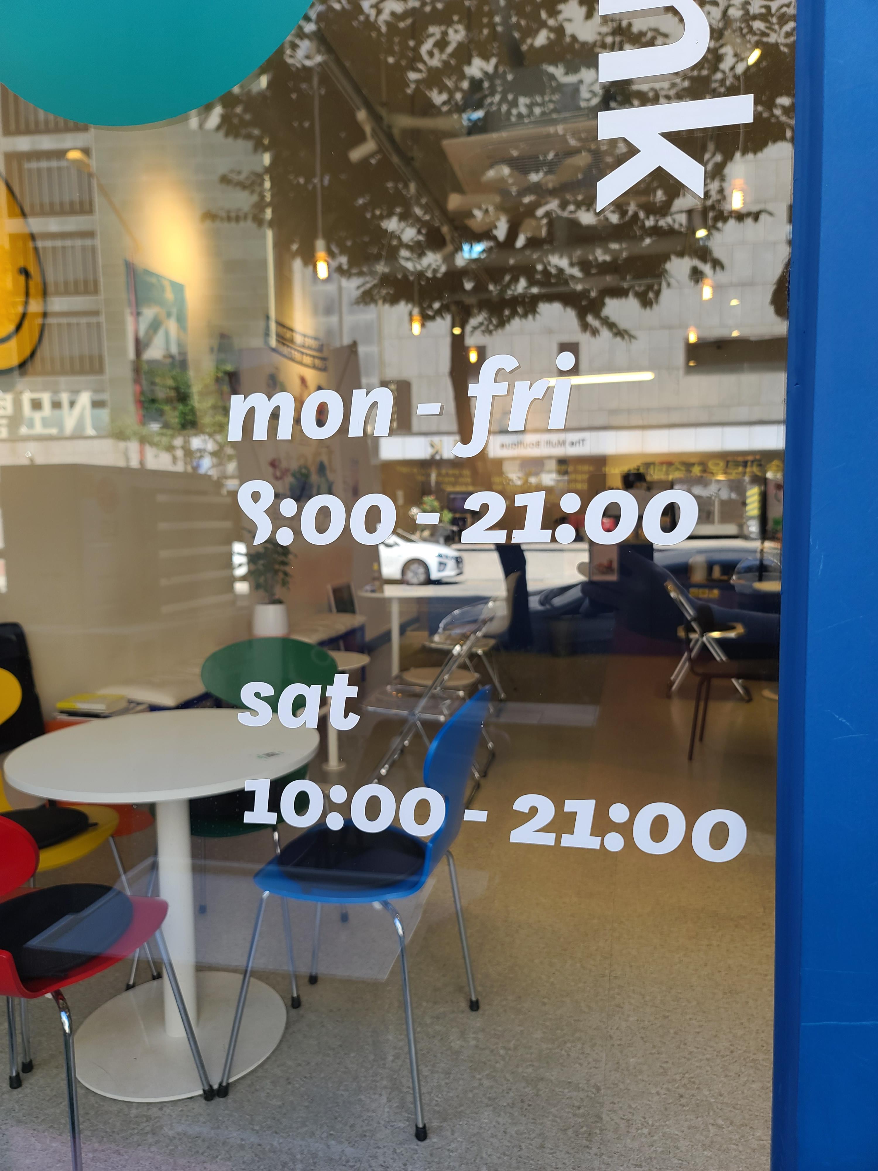 월-금 : 오전 9시 ~ 오후 9시