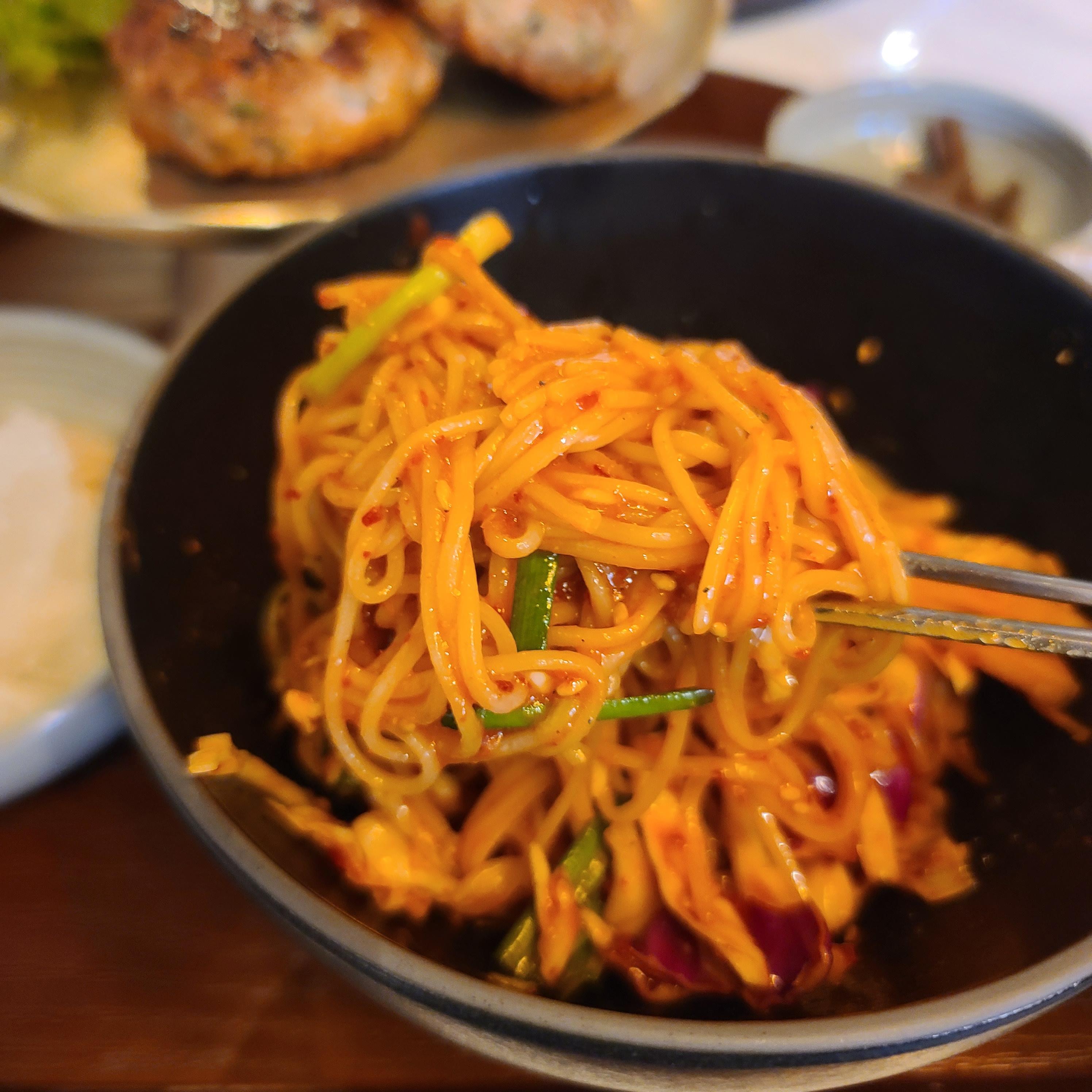 비빔국수 색감이 아주 예술입니다.