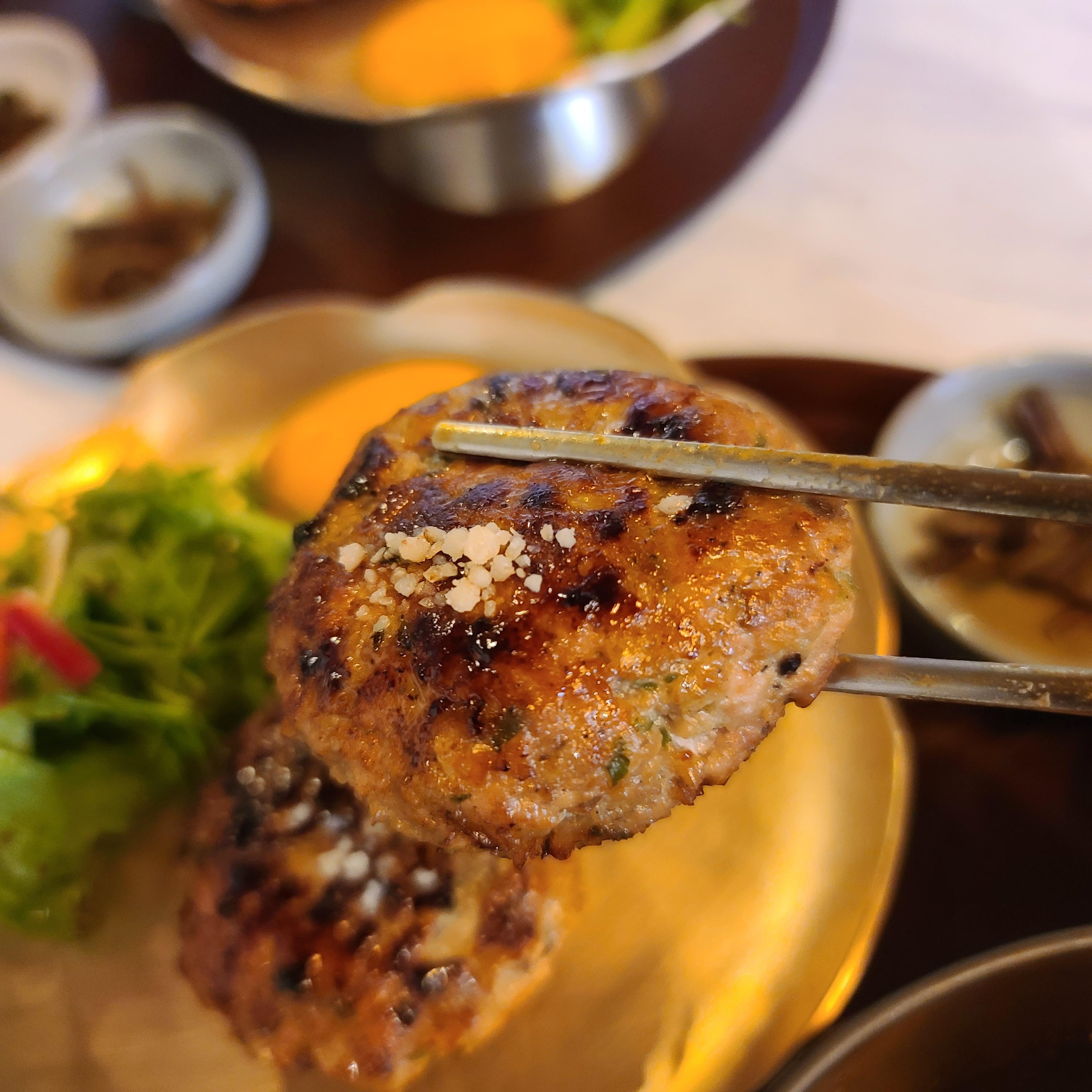 구성은 떡갈비 2 덩이와 샐러드 채소~!