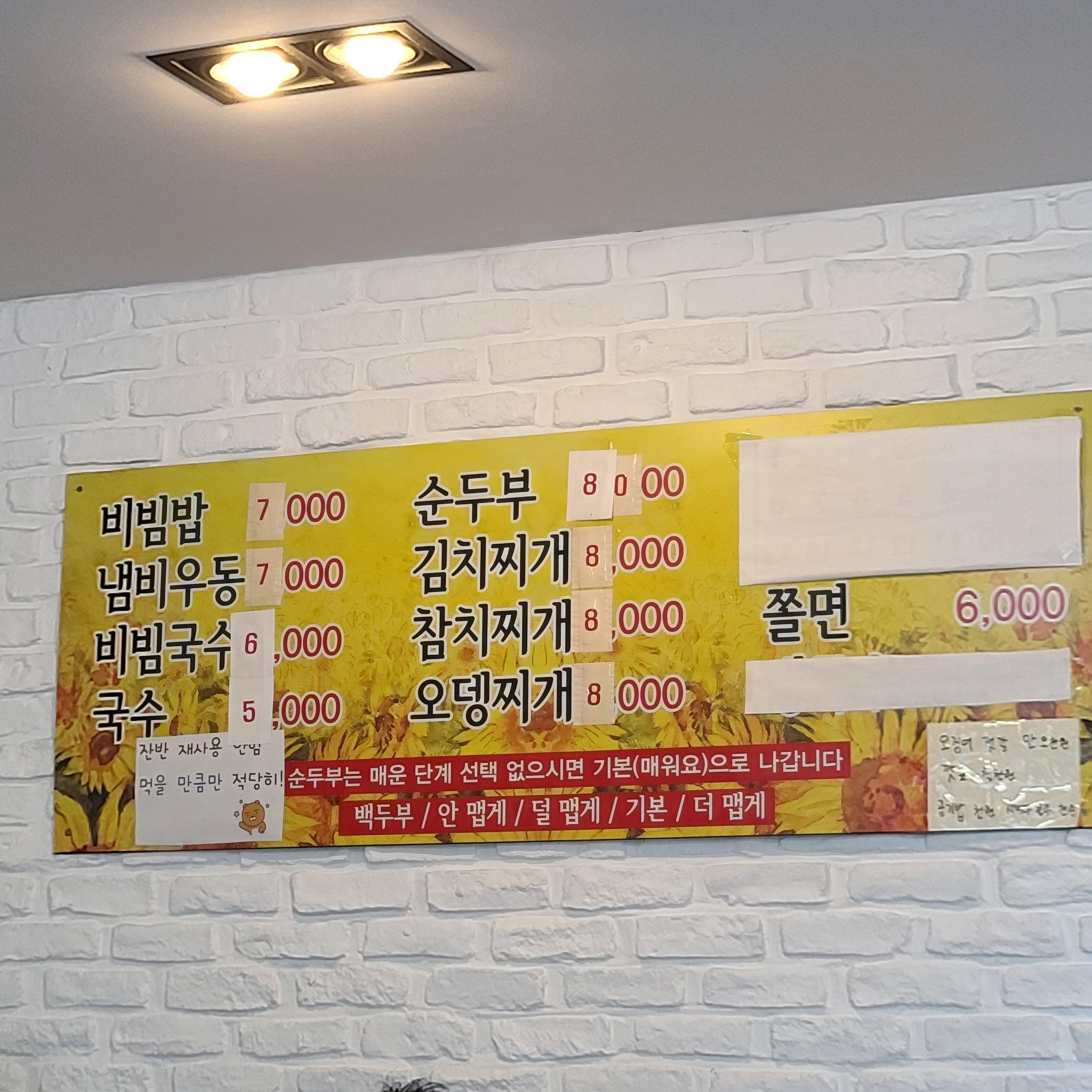 신해바라기분식 메뉴는 순두부도 있지만,
