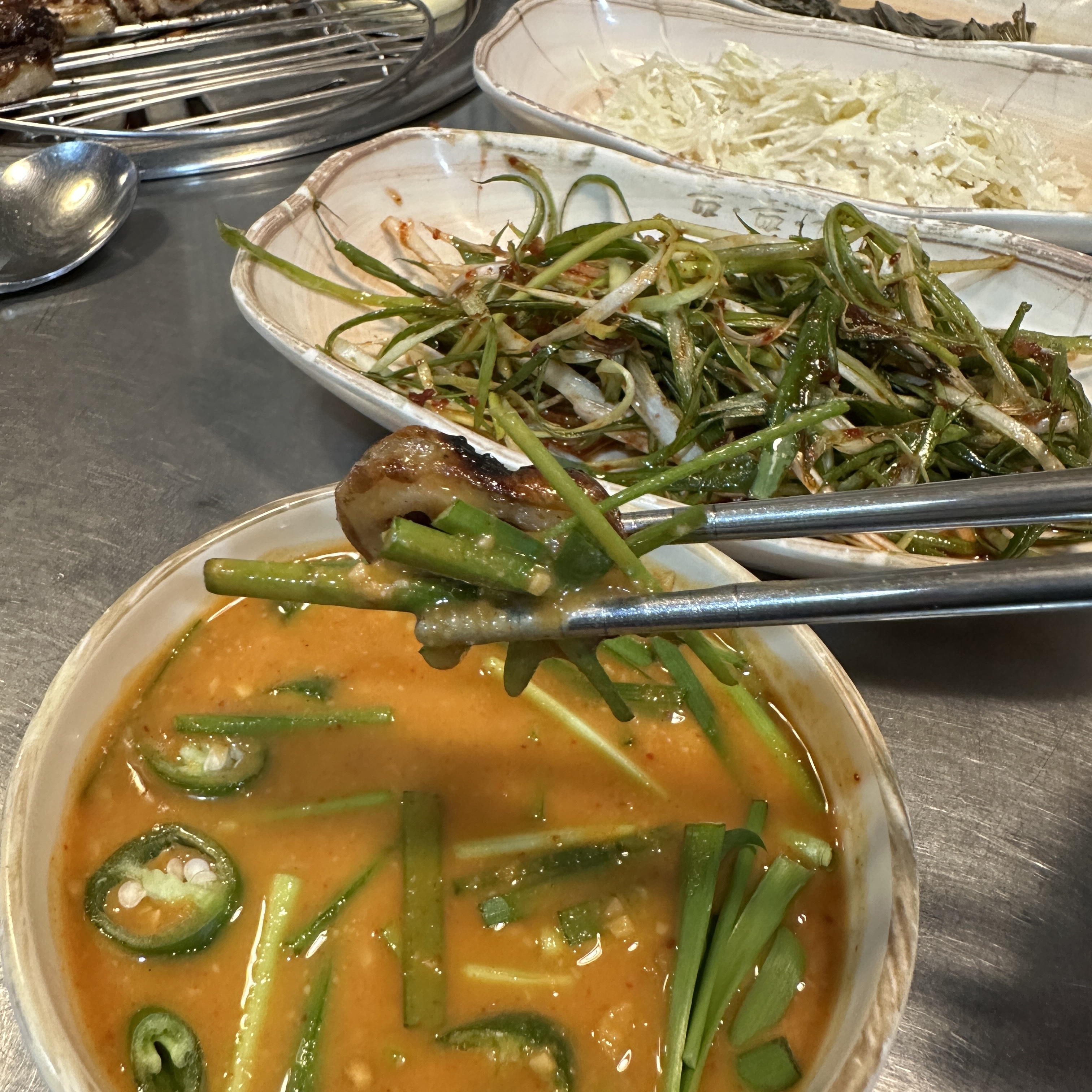함께 찍어 먹는 양념장이 나오는데,