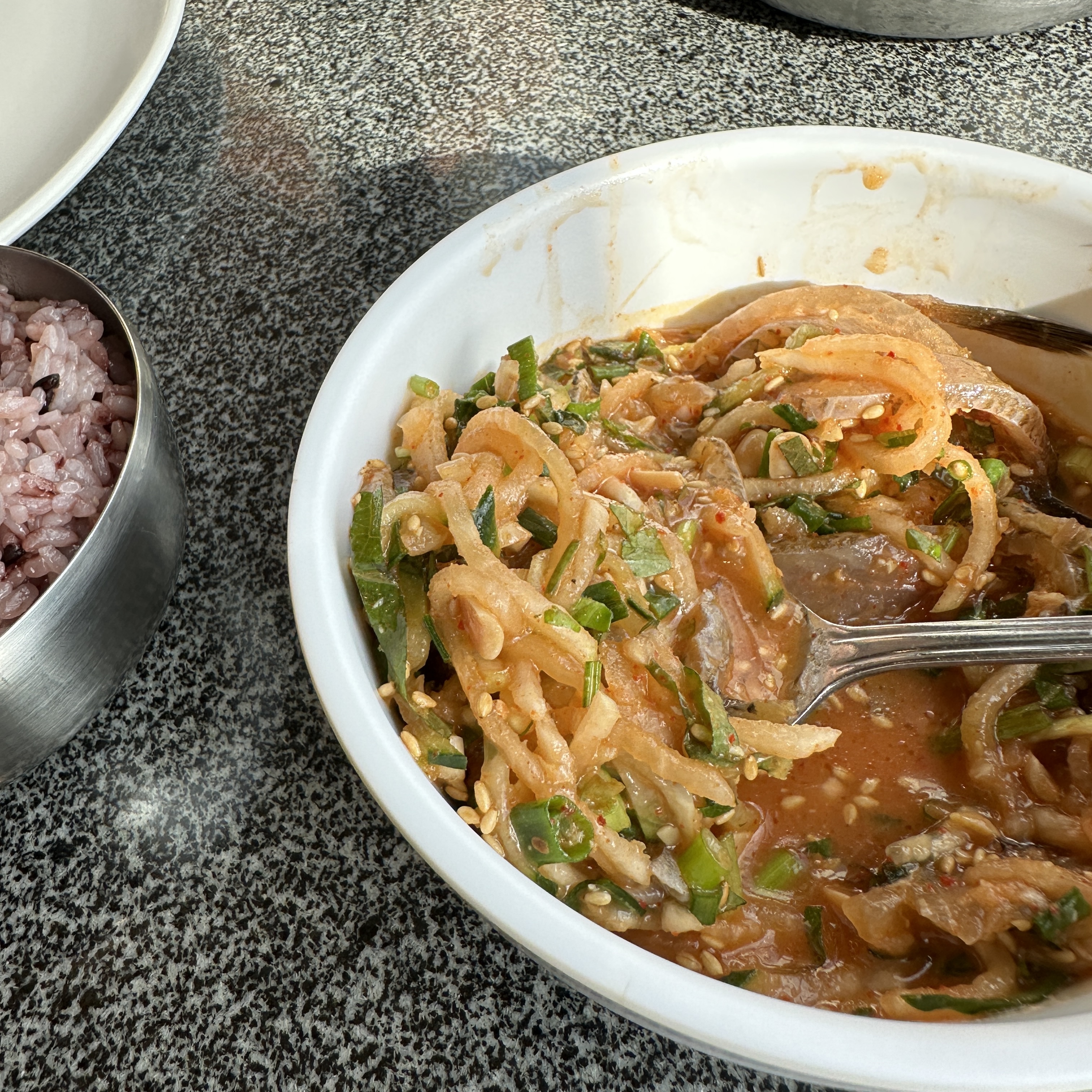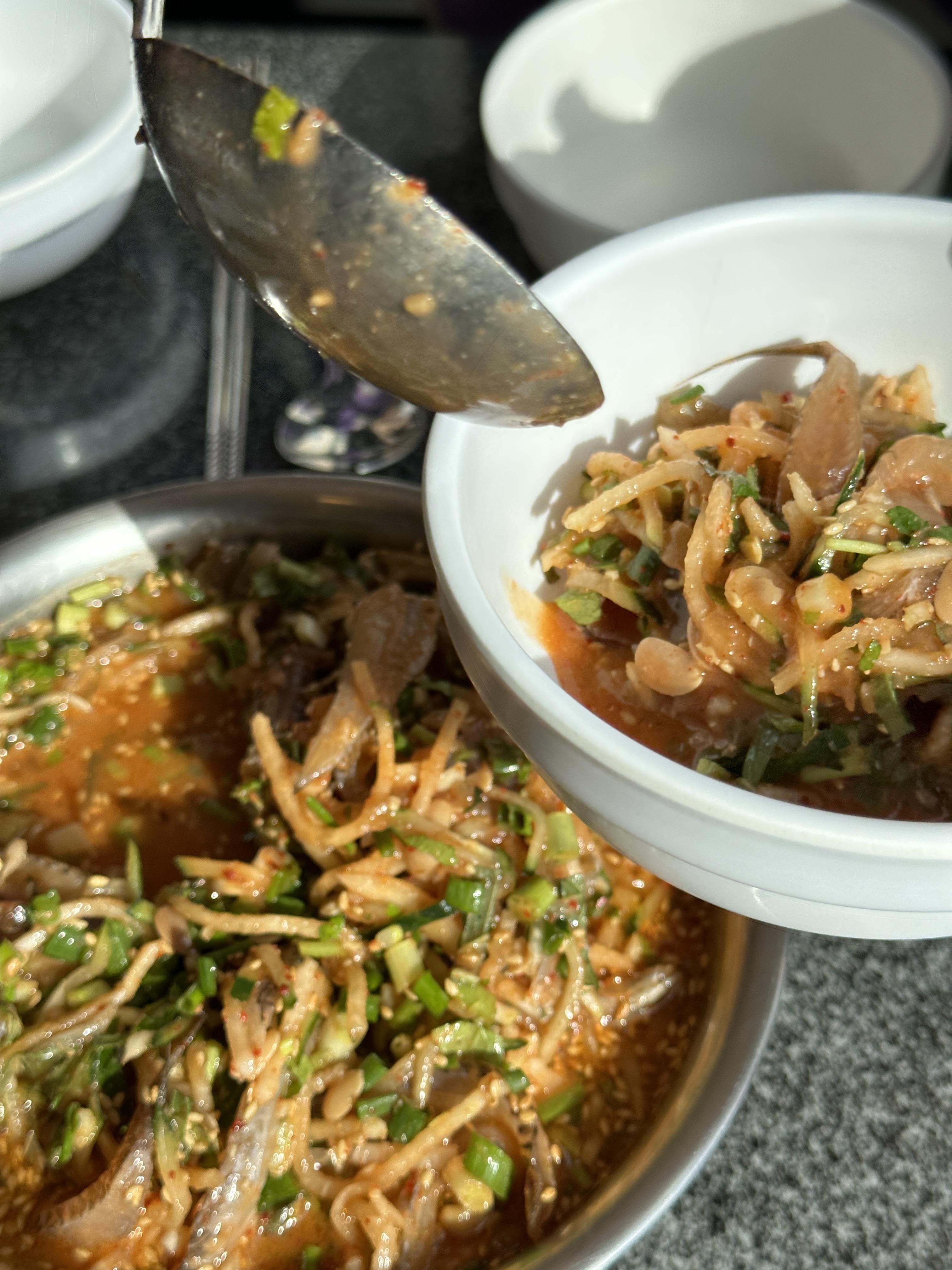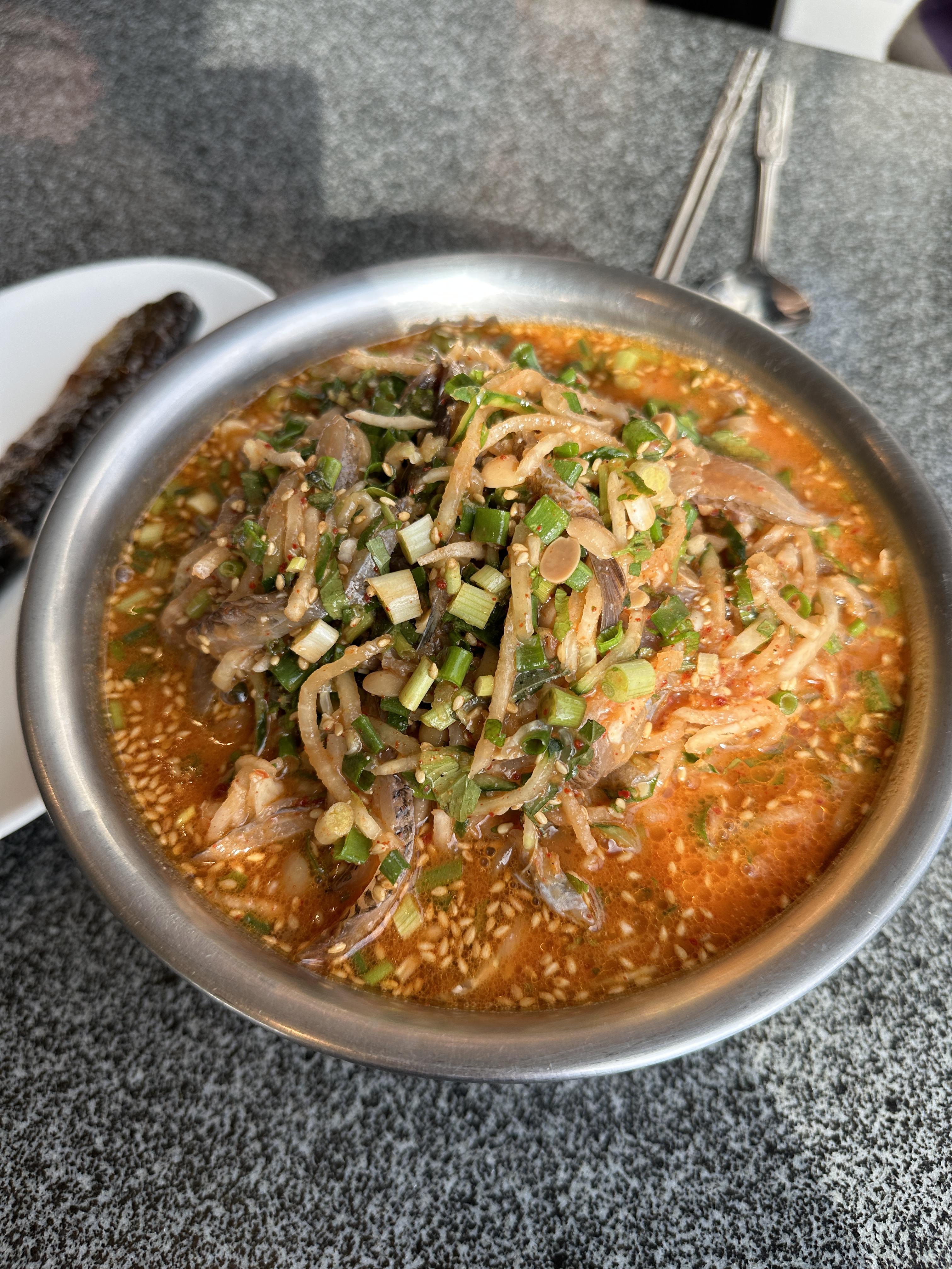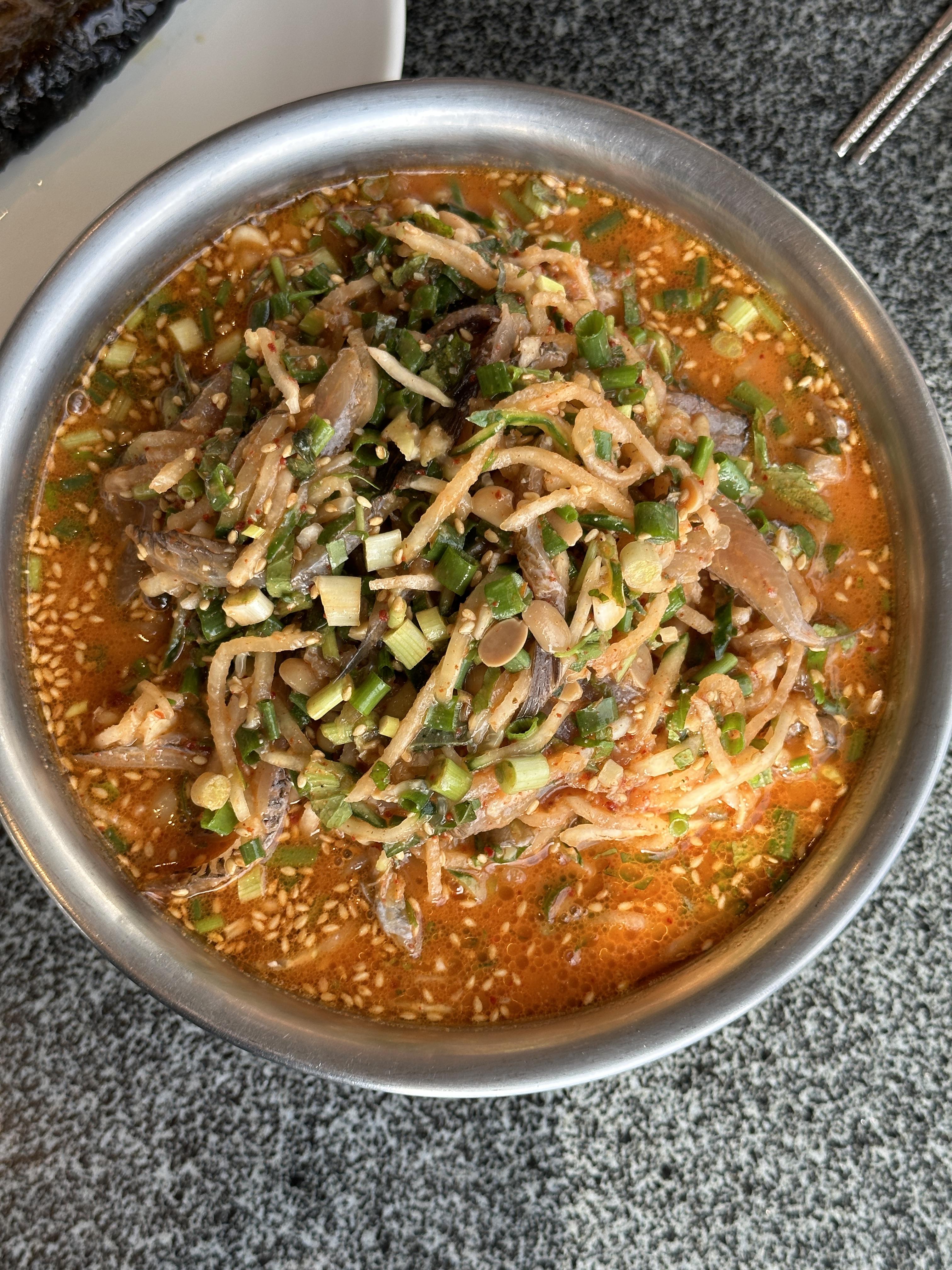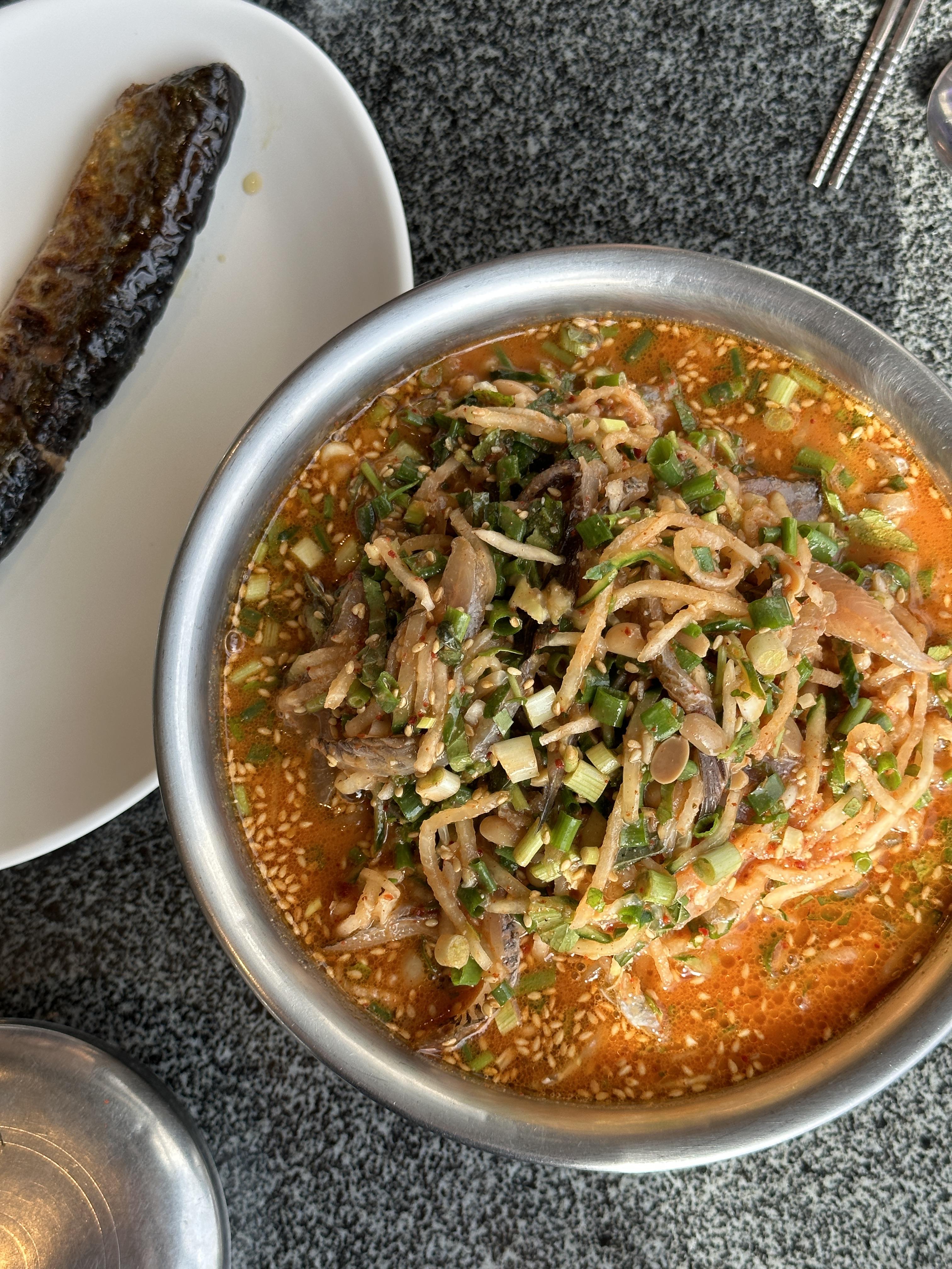 우선 된장을 기본으로 한 물회는 저희와는 어울리지 않았습니다.