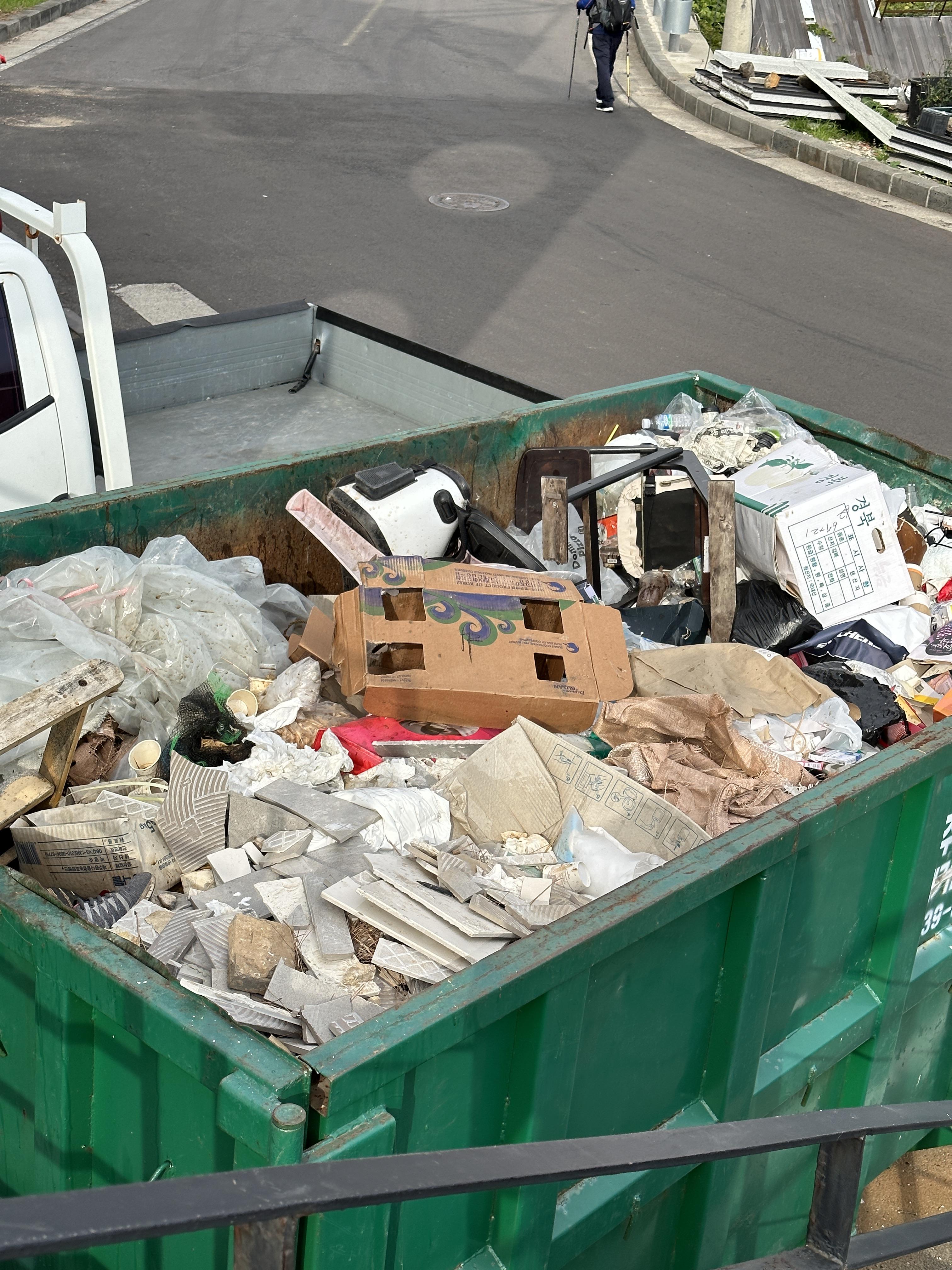 식장에 들어갈 땐 몰랐는데.. 식당 문을 열어두고 바로 계단 아래 쓰레기 컨테이너를 보고